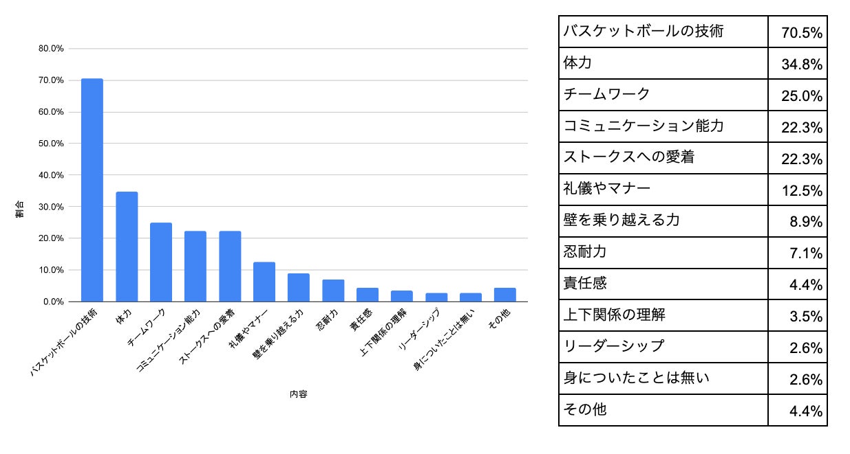 神戸ストークスバスケットボールスクールを通じて、お子様に身についたことは何ですか?(複数回答可)