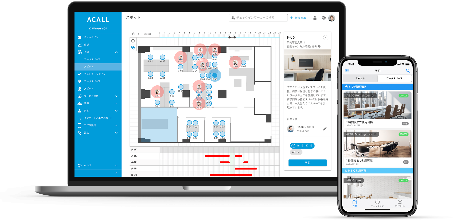 ACALLは、「くらし」と「はたらく」を自由にデザインできる世界の実現に向けて、ワークスタイルプラットフォーム「WorkstyleOS(ワークスタイルオーエス)」の開発・提供を行っています。 WorkstyleOSは、自動受付・入退館管理・座席管理・会議室管理・リモートチェックイン・オフィス分析の機能を内包し、これまで国内6,000社以上の企業の働き方を支援してきました。