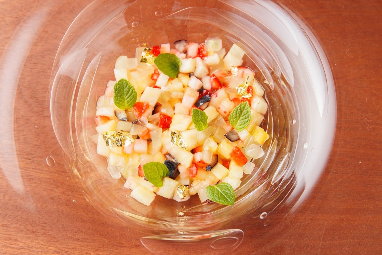 美味しさを感じていただけます。彩にミントと金箔を散らし、みずみずしさと華やかさを演出しています。