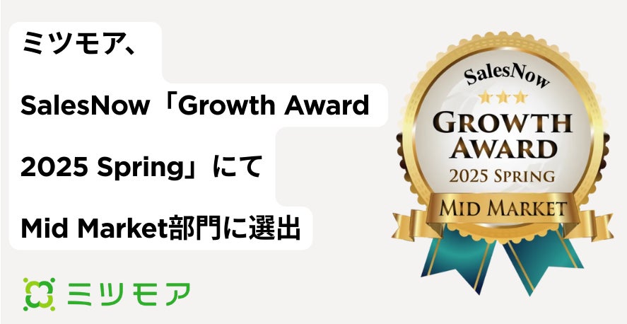 株式会社ミツモア(本社:東京都中央区、代表取締役:石川 彩子)は、株式会社SalesNowが主催する「SalesNow Growth Award 2025 Spring」において、Mid Market部門での選出企業として表彰されたことをお知らせいたします。
