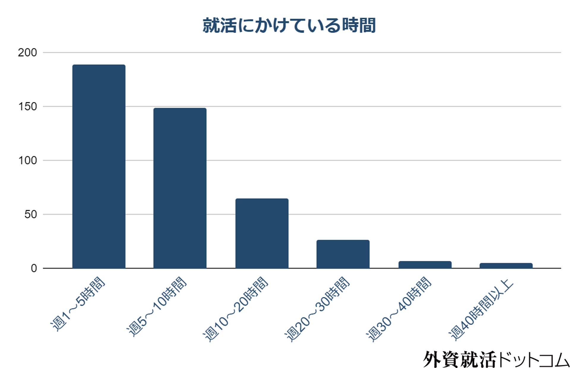 現在の就活の優先度を聞くと「まあまあ」が占めていますが、就活にかける時間としては「週1~5時間」「週5~10時間」程となるようです。