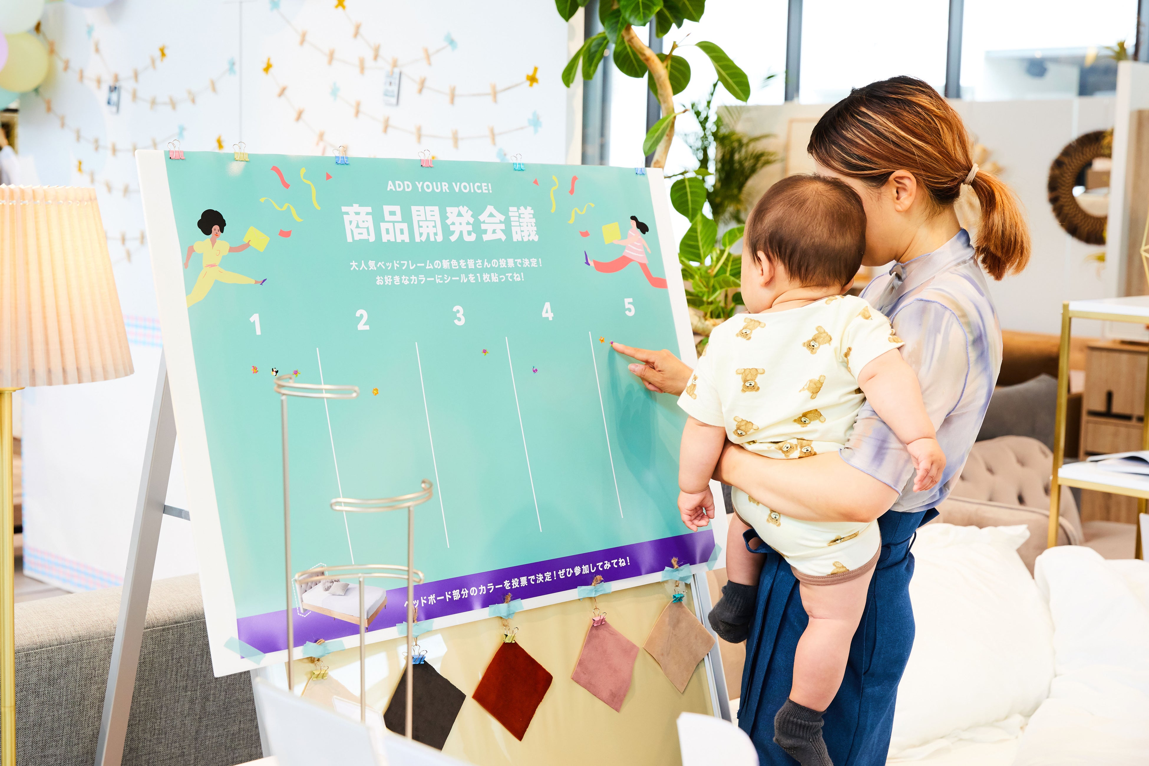 いざPOP UPに足を踏み入れると、会場の天井付近は色とりどりのガーランドで飾り付けられ、まさに「ホームパーティ」仕様!