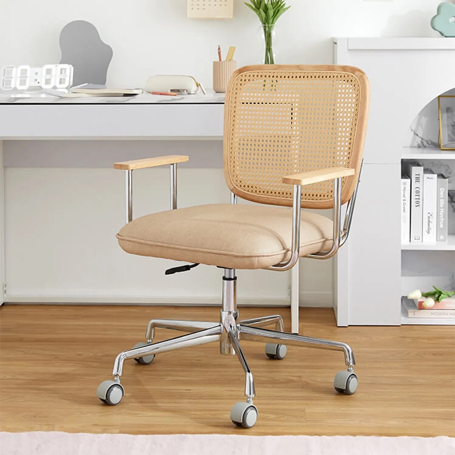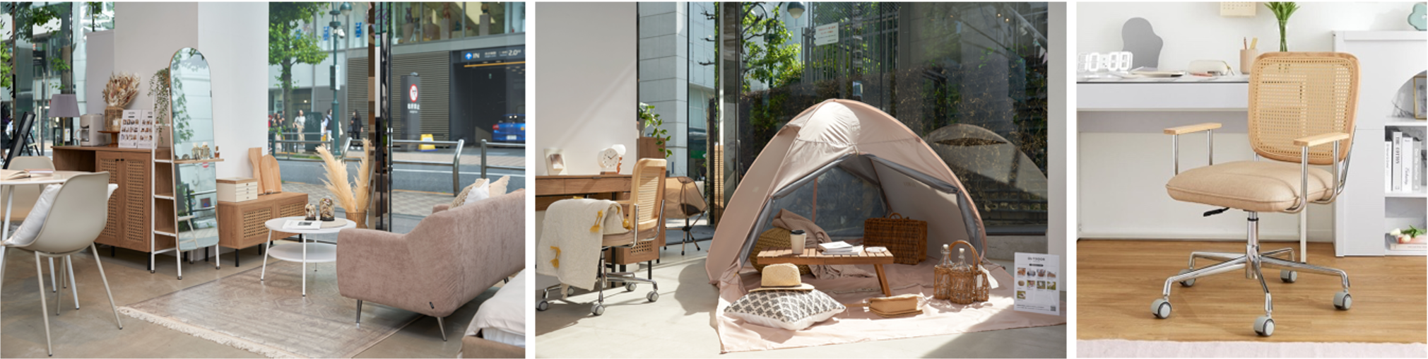 その他にも、韓国インテリアを叶えるアンニュイテイストの「NATURAL」コーデエリアでは、「ラタン調デスクチェア/¥ 19,990(税込) https://www.low-ya.com/goods/T3K18」のチェアが、よほど珍しかったのか…「リモートワークにありがたい肘掛けや、座りご心地が快適な韓国風インテリアはないのでレアですね!」と唸るお客様が続出。LOWYA専属のスタイリストも「実際に商品会議をする中で、LOWYAの女性スタッフが何度も腰掛けて、肘掛けの位置など念入りにチェックして、話し合ってできた商品なのでイチオシです!」と、話していました。