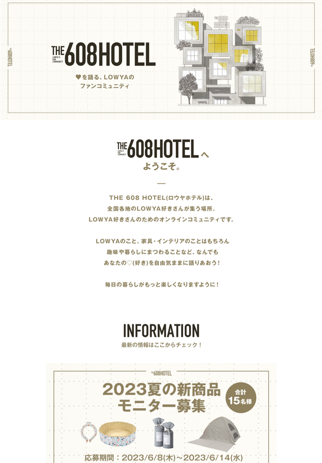 公式ファンコミュニティ「THE 608 HOTEL(呼称:ロウヤ ホテル) https://community.low-ya.com/」を創設いたしました。