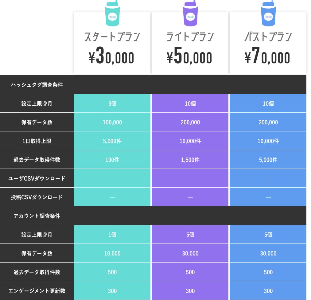 ※お試しプランはスタートプラン(過去調査 100投稿まで)の利用となります。