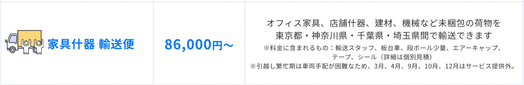 また今回の新プランの提供開始に合わせて、家具・什器の輸送サービスの提供も開始しました。