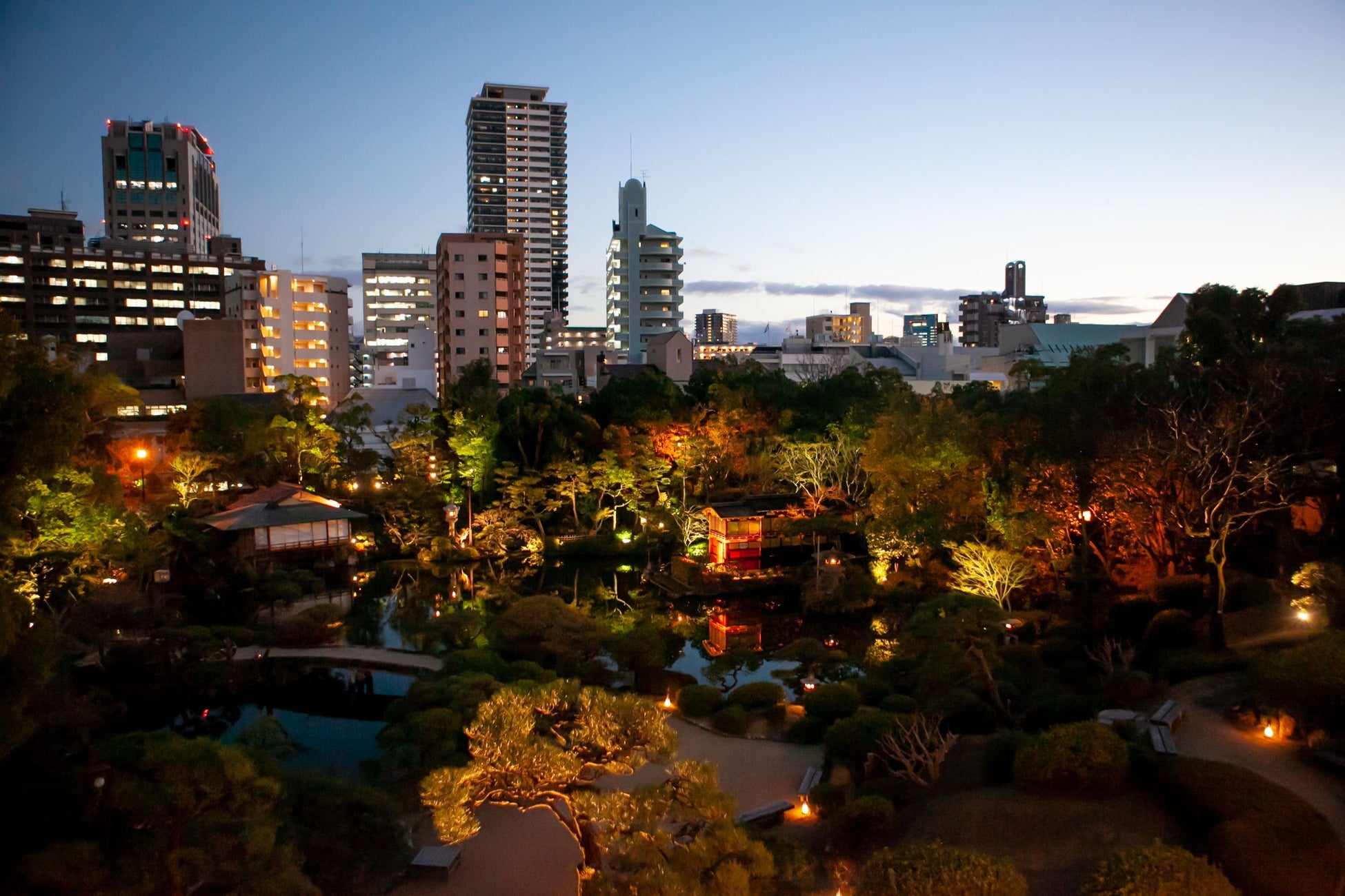 相楽園全景 右側手前に芝生公園。中央上部が「THE SORAKUEN」
