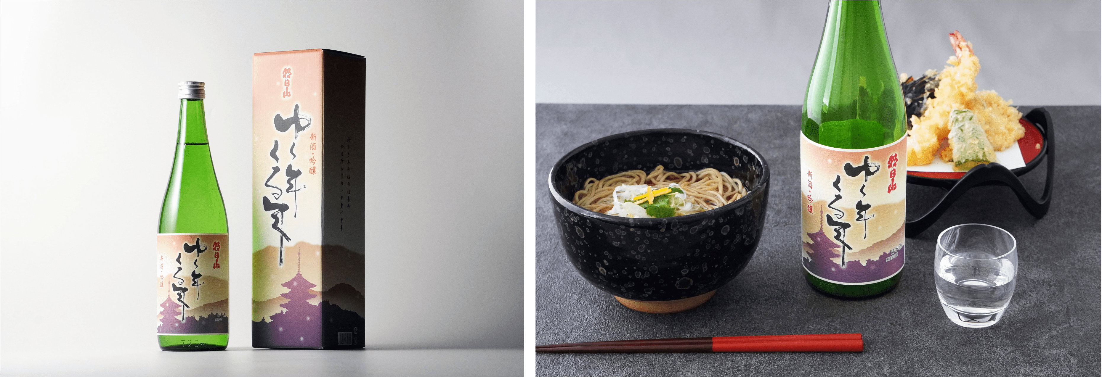 ゆく年くる年は、収穫したばかりの酒造好適米「五百万石」を100%使って醸した新酒で、毎年11月下旬に出荷される年末の定番の日本酒です。過ぎゆく年に感謝をし、新たな年の繁栄を願いながら味わっていただきたいという願いを込めて1989年に発売された当社最大の季節限定商品です。