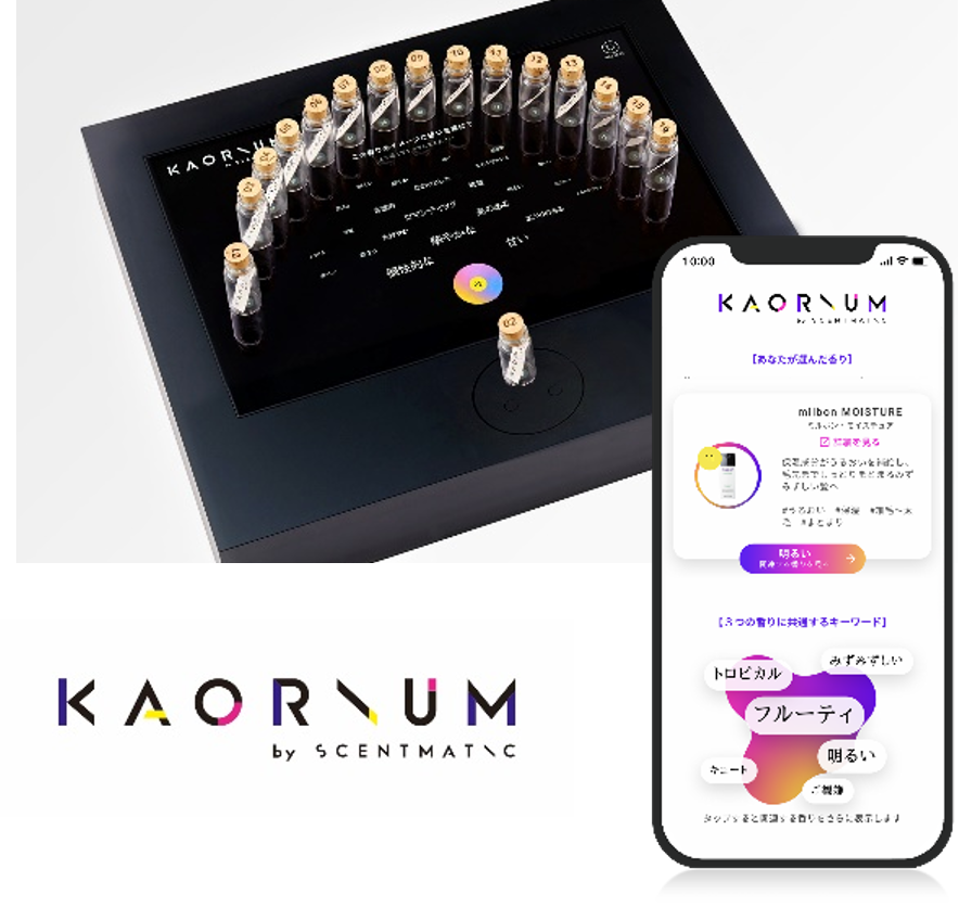 *「KAORIUM (カオリウム)」は、様々な香りを「感性言葉」に変換すると同時に言葉から香りを選び出すことができる、SCENTMATIC株式会社(代表取締役:栗栖 俊治、本社:東京都)開発の、香りと言葉の融合体験ができるAIシステムです。※KAORIUMはSCENTMATIC株式会社の登録商標です。