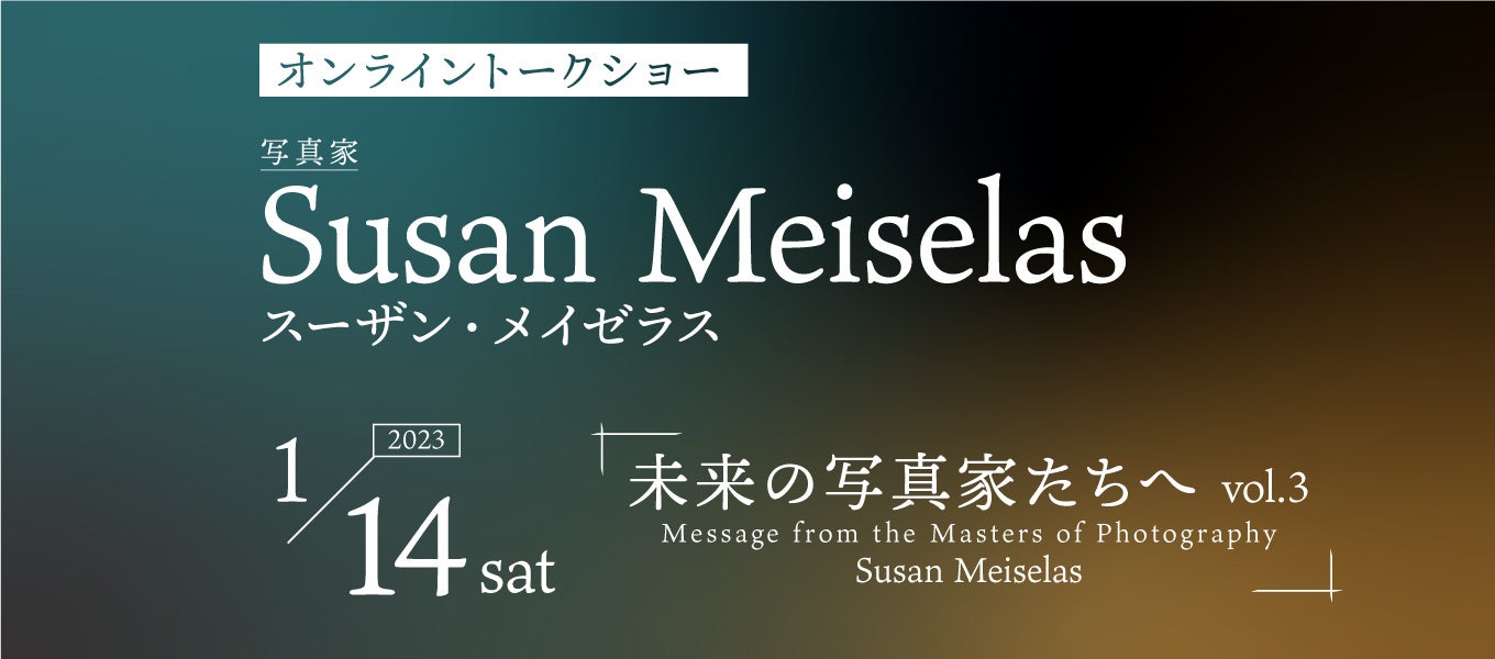 今回は、2023年1月14日(土)にアメリカを代表するドキュメンタリー写真家 スーザン・メイゼラスをお招きし、開催する運びとなりました。