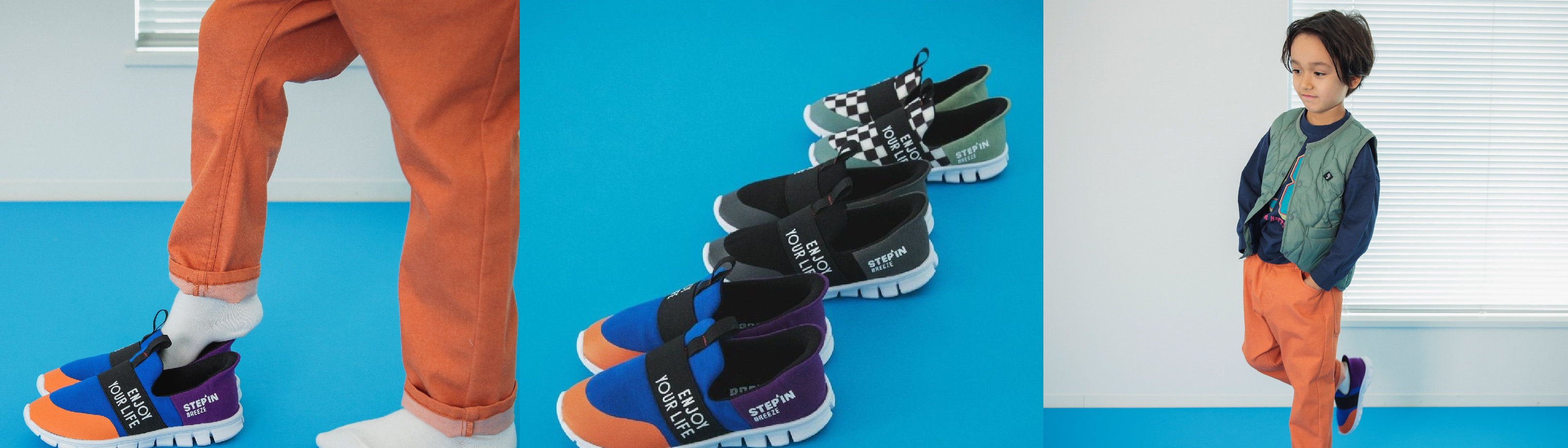 忙しい朝に親子で⼤活躍︕子ども服BREEZE(ブリーズ)から⽴ったまま、足を踏み入れるだけで履ける︕ステッピンスニーカーとステッピンスリッポンが登場︕