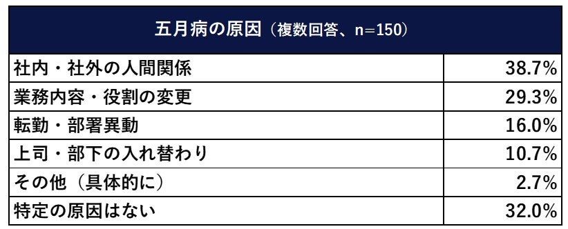 ・五月病の原因「社内・社外の人間関係」38.7%と4割近い方が回答