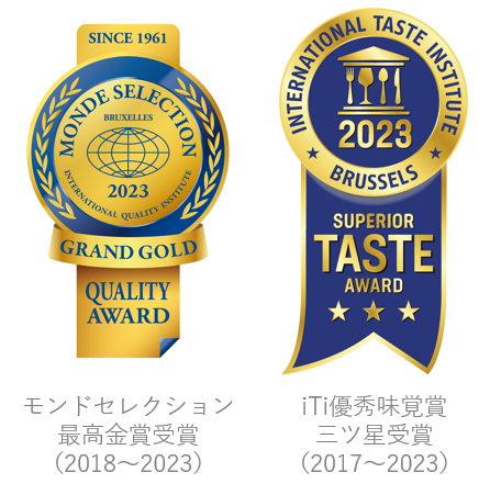 ・2023年の受賞でモンドセレクション最高金賞を6年連続、世界味覚審査機構(iTi)優秀味覚賞最高ランクの三ツ星を7年連続で受賞し、そのおいしさは世界に認められています。