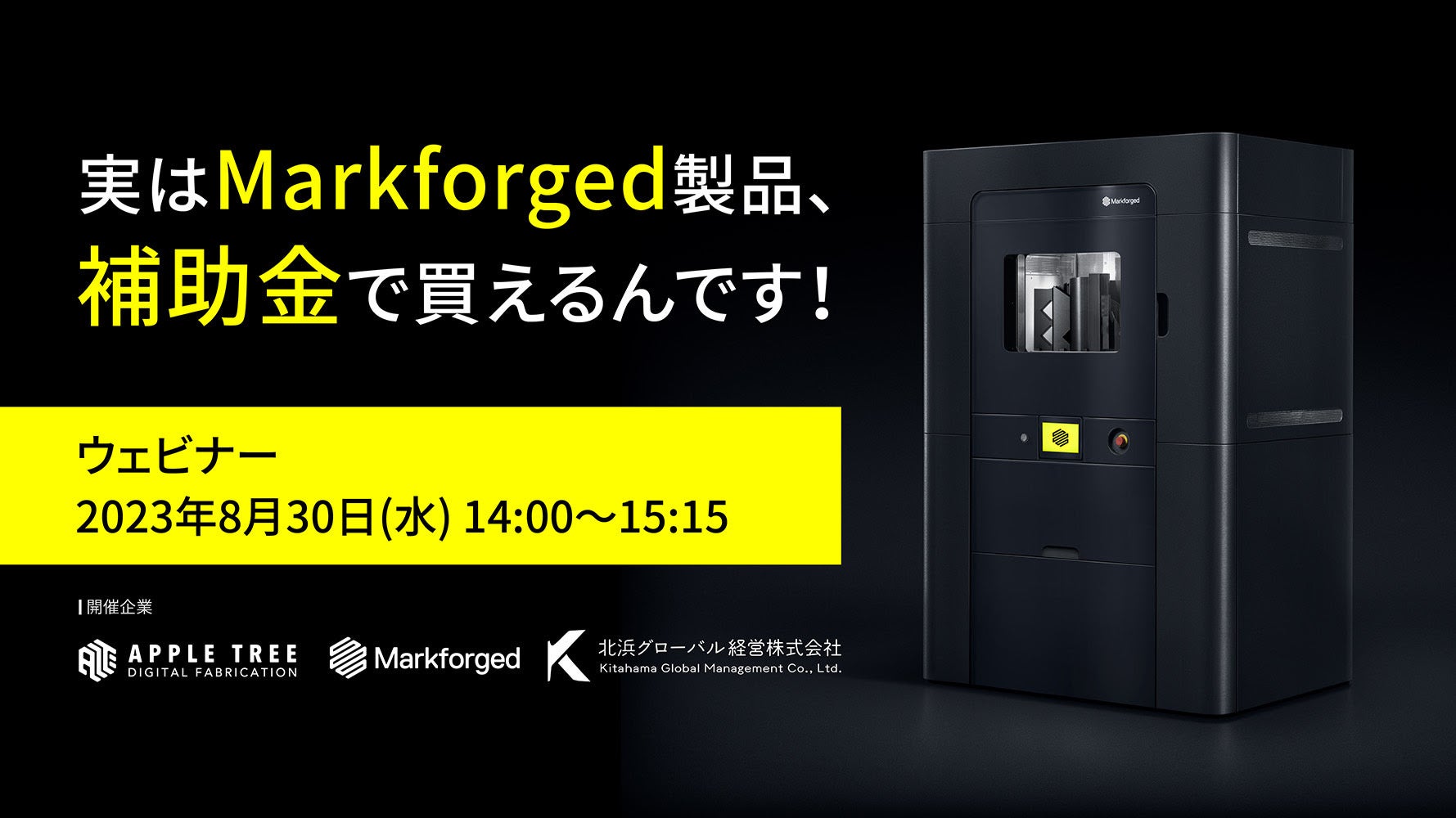弊社は、Markforged製の3Dプリンターの商品情報をご紹介するだけでなく、3Dプリンターのご購入時に活用できる補助金の利用方法についてもご案内するウェビナーを開催いたします。以下はウェビナーの詳細です。