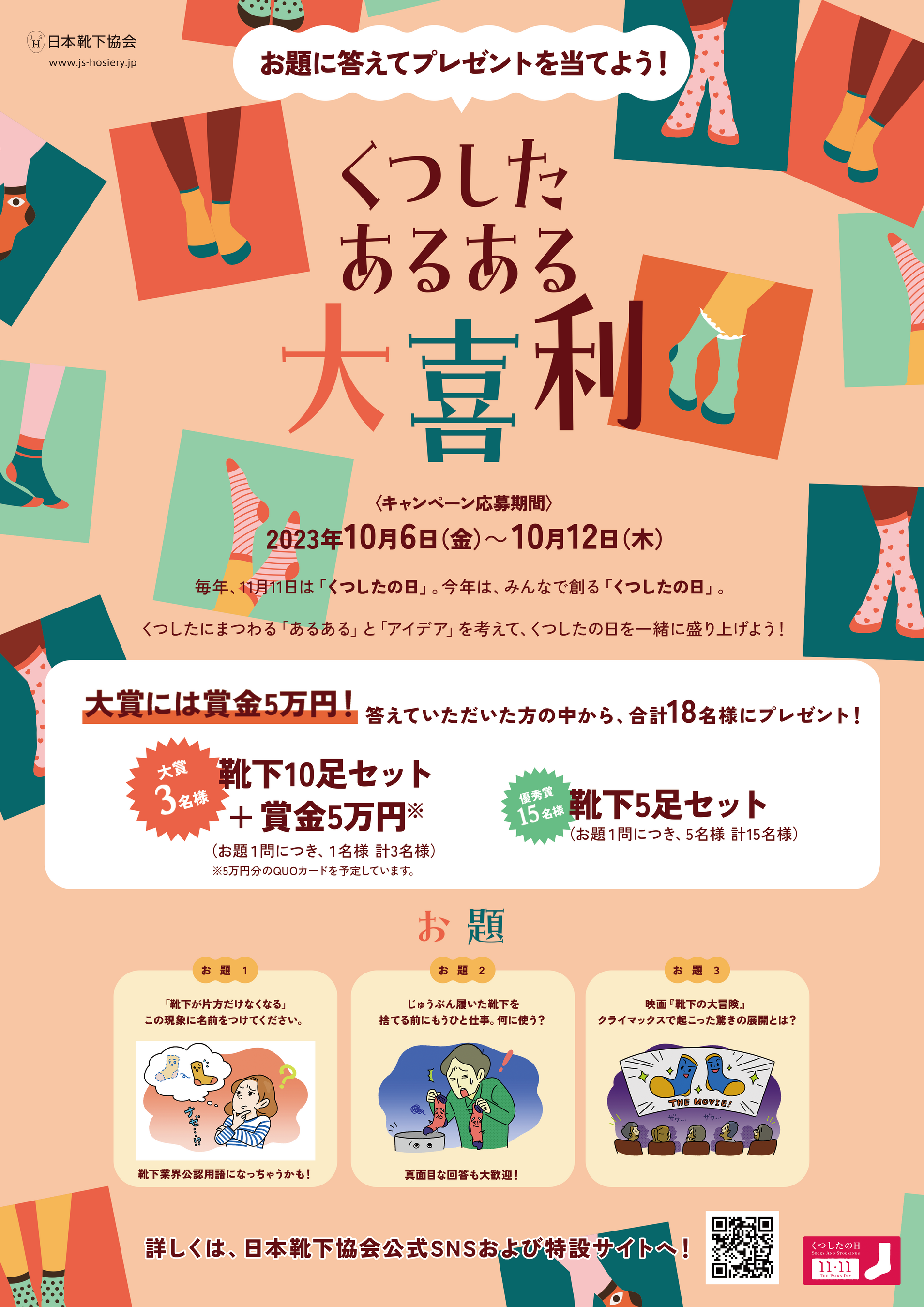 【特設サイト】http://www.js-hosiery.jp/kutsushitanohi2023