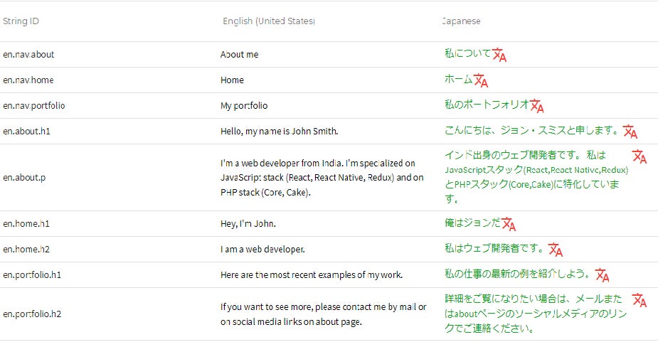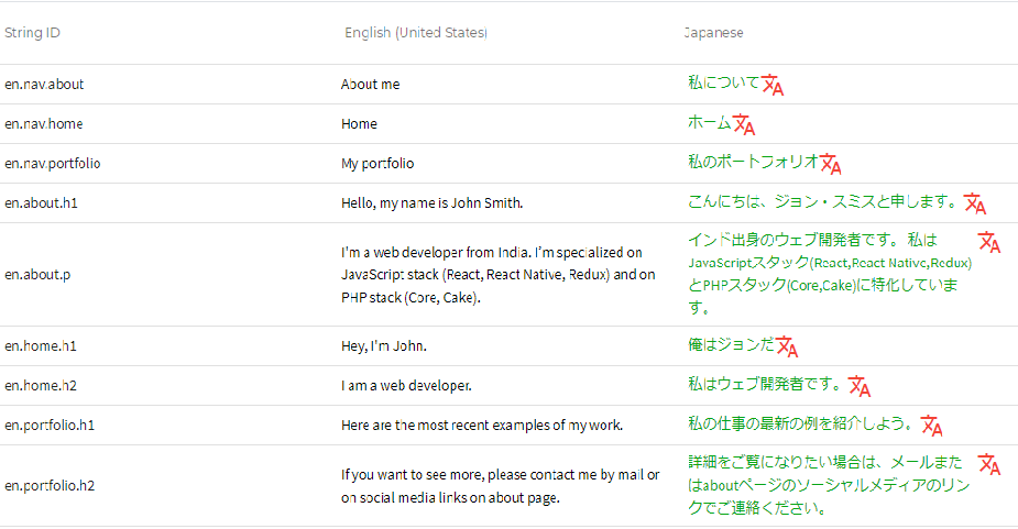 (下記図、右の日本語が機械翻訳適用部分、赤のマークが機械翻訳適用済みのステータスを表しています)
