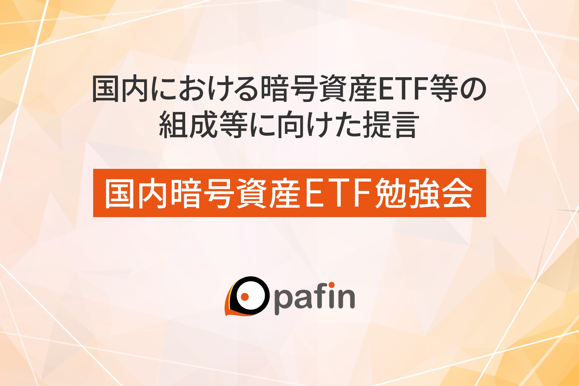 「クリプタクト」や「defitact (ディファイタクト)」など、web3関連ビジネスを展開する株式会社pafin(共同代表取締役 アズムデアミン/斎藤岳、以下pafin)は、暗号資産交換業者、証券会社、資産運用業者および信託銀行並びに法務および税務の専門家からなる「国内暗号資産ETF勉強会」に参加するとともに、本勉強会の参加メンバー一同として「国内における暗号資産ETF等の組成等に向けた提言」を公表しました。