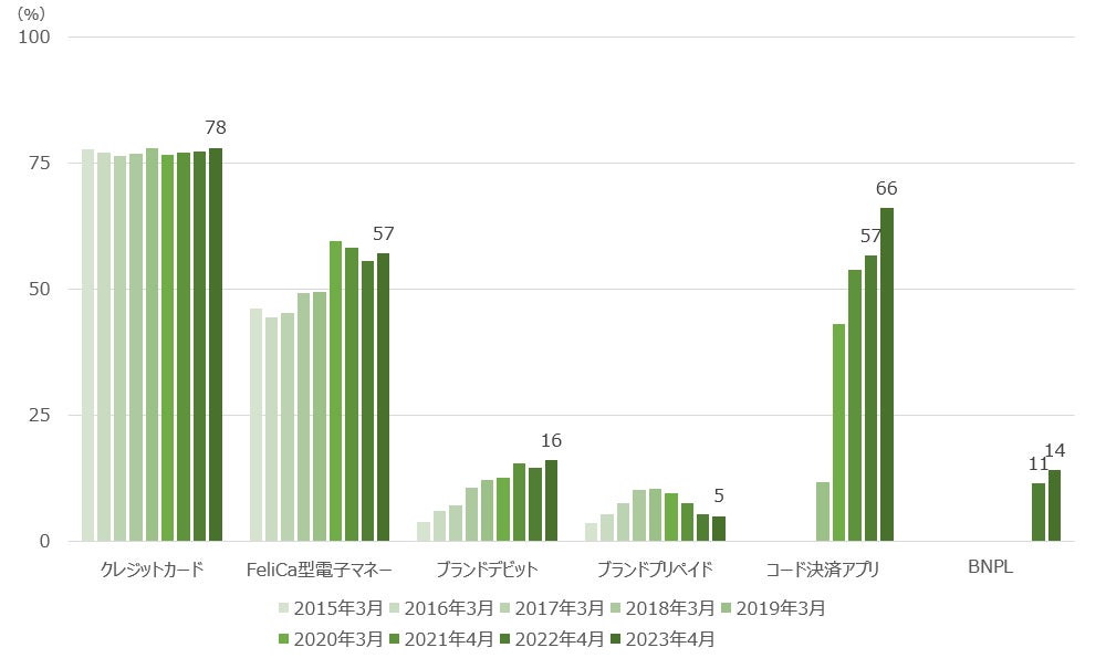 ・QRコード決済の利用は全体で66%と調査開始以来、過去最高の利用率に