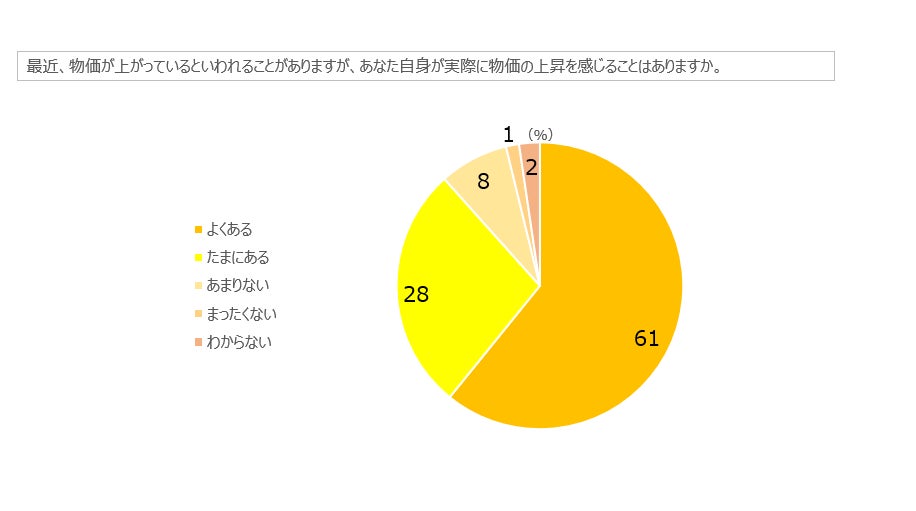 ■ 物価上昇を感じるかについて「よくある(61%)」「たまにある(28%)」と約9割が物価上昇を実感