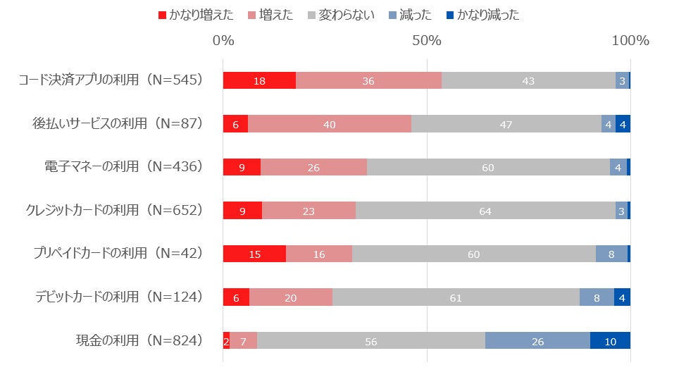 ■一方で、現金の利用が「減った」「かなり減った」と回答したのは36%