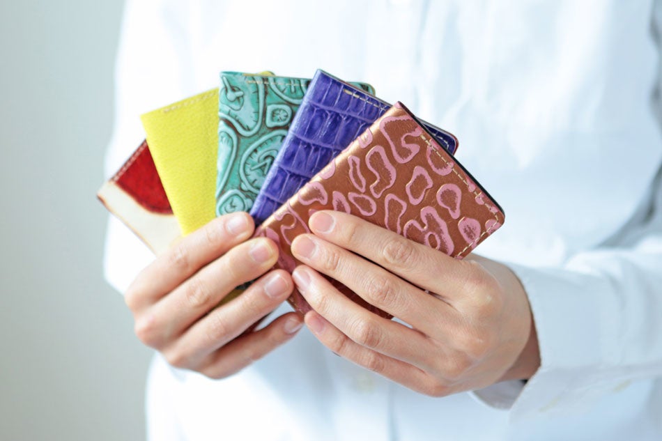 本革100%でつくった薄型の名刺入れに限定カラーが登場です。 100色の中から自分のカラーを見つけていただけます。