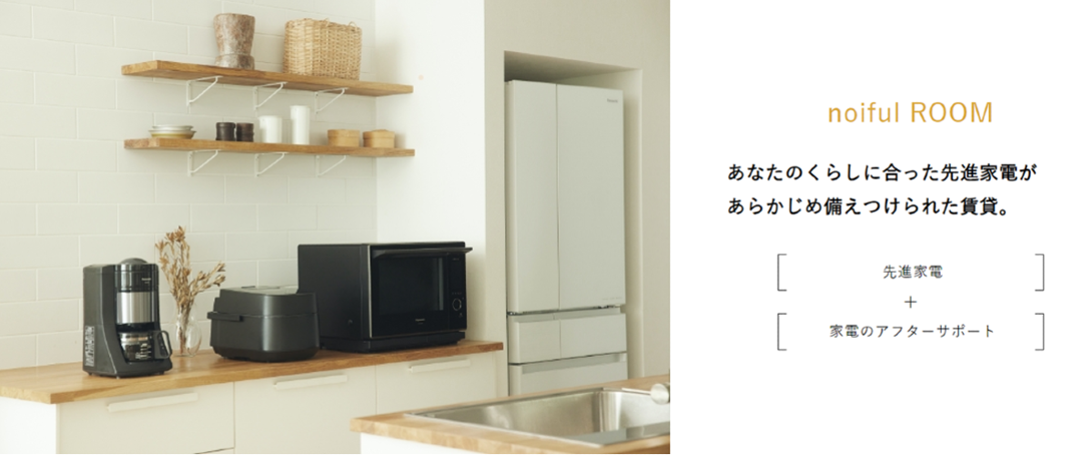「noiful」は、建物の老朽化や空き家・空室の増加などの社会課題と、消費者の「所有しないライフスタイル」の浸透、在宅時間の増加に伴う充実した住まい環境などのニーズを背景に、くらしアプライアンス社が提供する物件オーナーおよび不動産管理会社向けのサービスです。機能性とデザイン性を両立した先進家電と、家電の使い方サポートや、もしもの時の修理交換、入退去時の家電クリーニングなどをパッケージで提供するサブスクリプションサービスで、物件オーナーや不動産賃貸管理会社には賃貸住宅の価値向上による物件運用の安定化を、入居者には気軽に快適な生活をスタートできる「持たない豊かなくらし」を届けます。