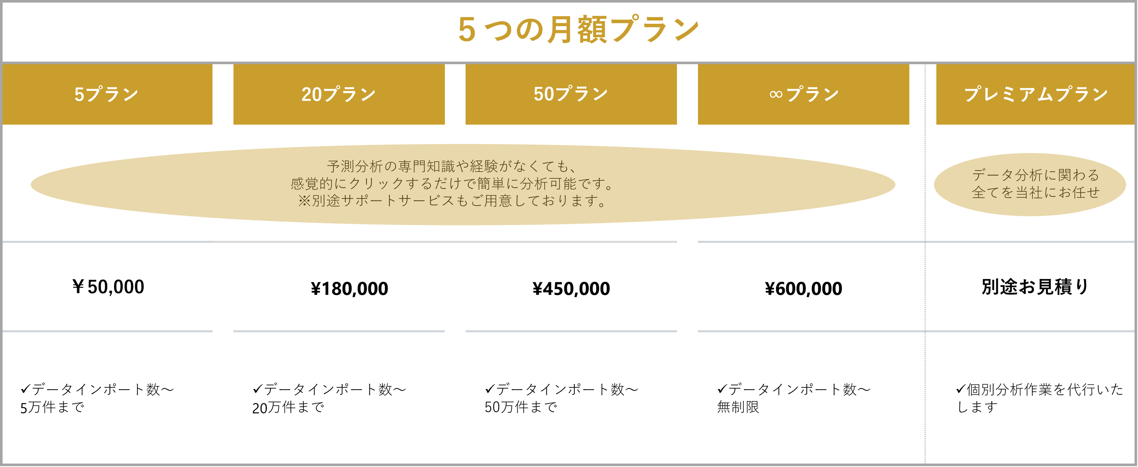 ※月額費用は、「GOLDEN LIST」へ投入するデータ数に応じて、以下5つのプランから選択できます。