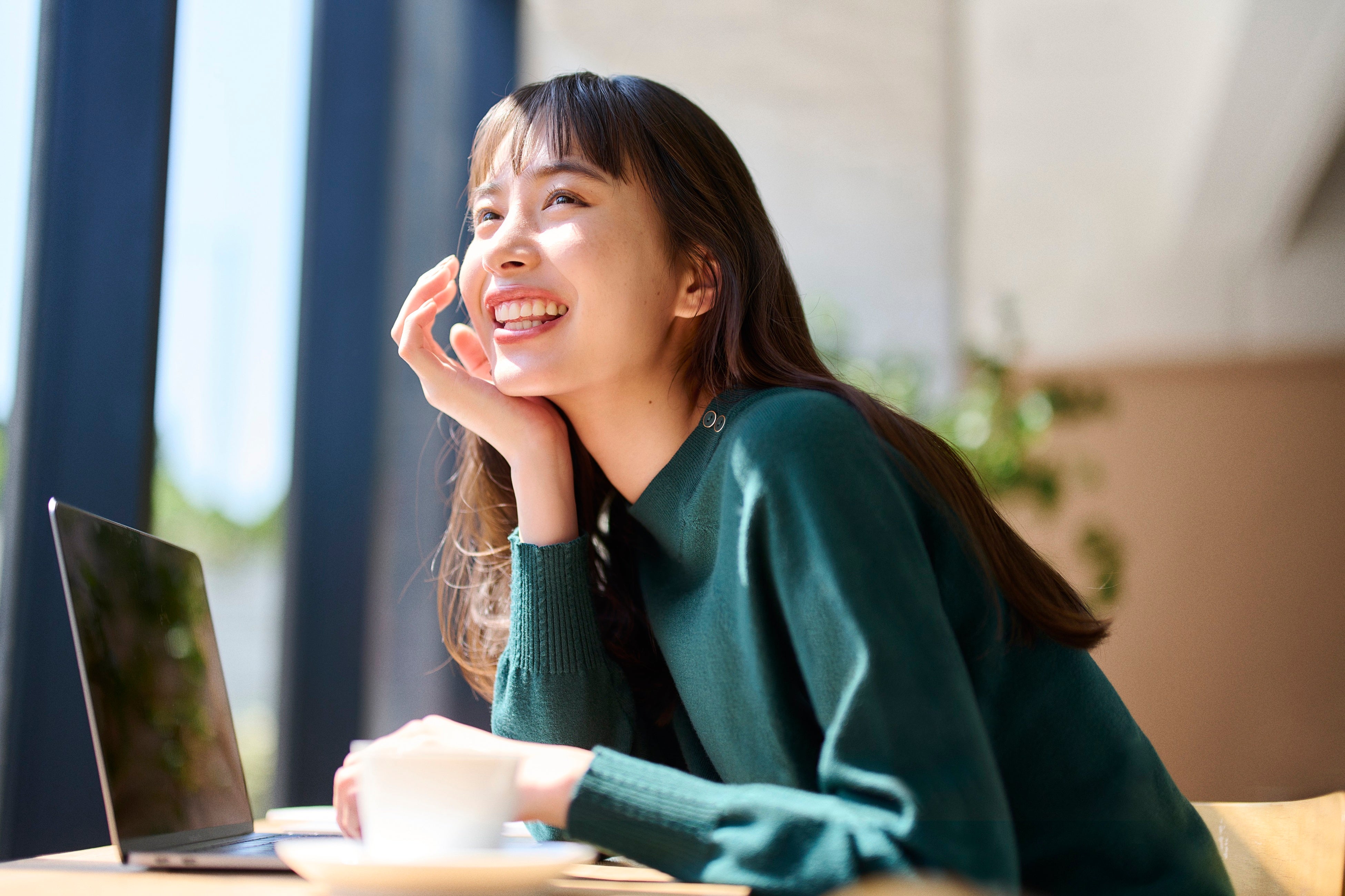 第2弾の動画は、日の光を浴びてカフェに佇む井桁さんと、風を感じて颯爽とポジティブに通勤する2人の井桁さんが登場。街に出た2人が偶然すれ違ったとき、お互いの存在に気付き、明るい未来を感じてふと笑顔になるというストーリーとなっています。