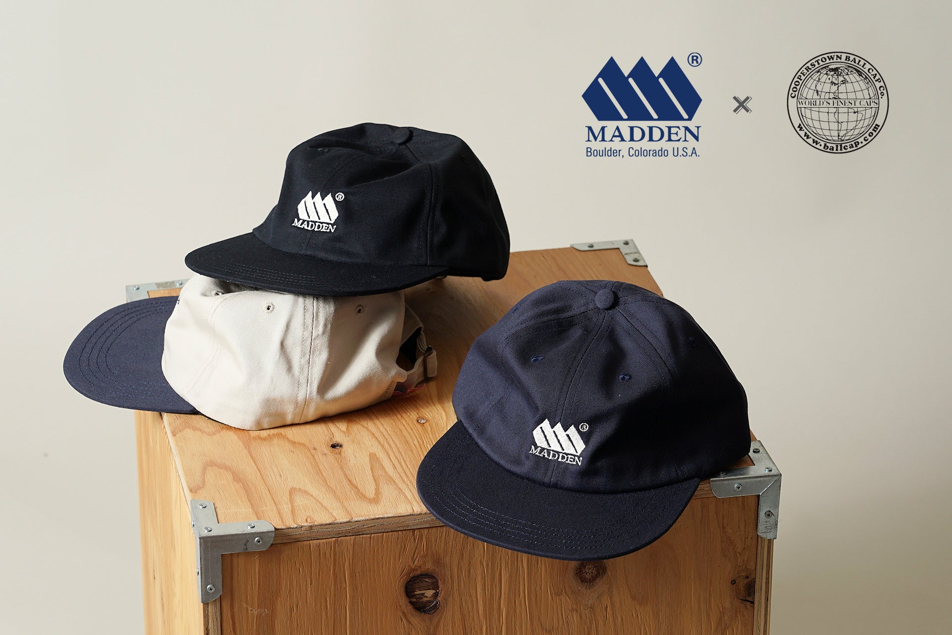 今回発売するのは、1974年創業のカジュアルブランド「MADDEN」と、1986年創業のボールキャップ専門ブランド「COOPERSTOWN BALL CAP」という、共にアメリカのクラフトマンシップを継承するブランド同士による初のコラボレーションモデルです。
