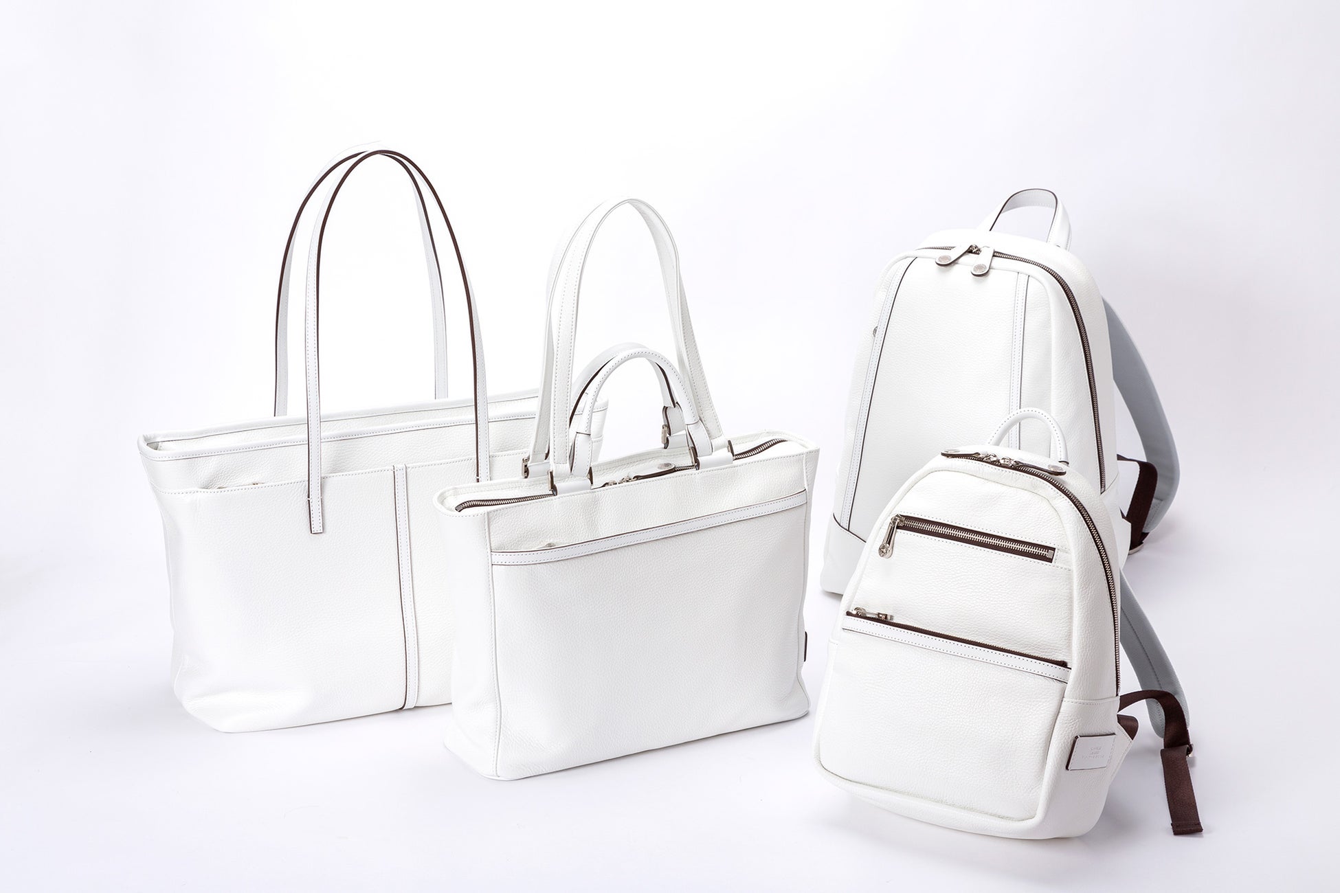 ポップアップストアでは、両店舗とも、イタリア産の上質なホワイトレザーのみで展開するフラッグシップシリーズ「JETTER(ジェッター)」のバッグと革小物の全アイテムを一堂に揃えます。ホワイトのシュリンクレザーには強撥水加工を施しており、雨や汚れにも強く丈夫です。