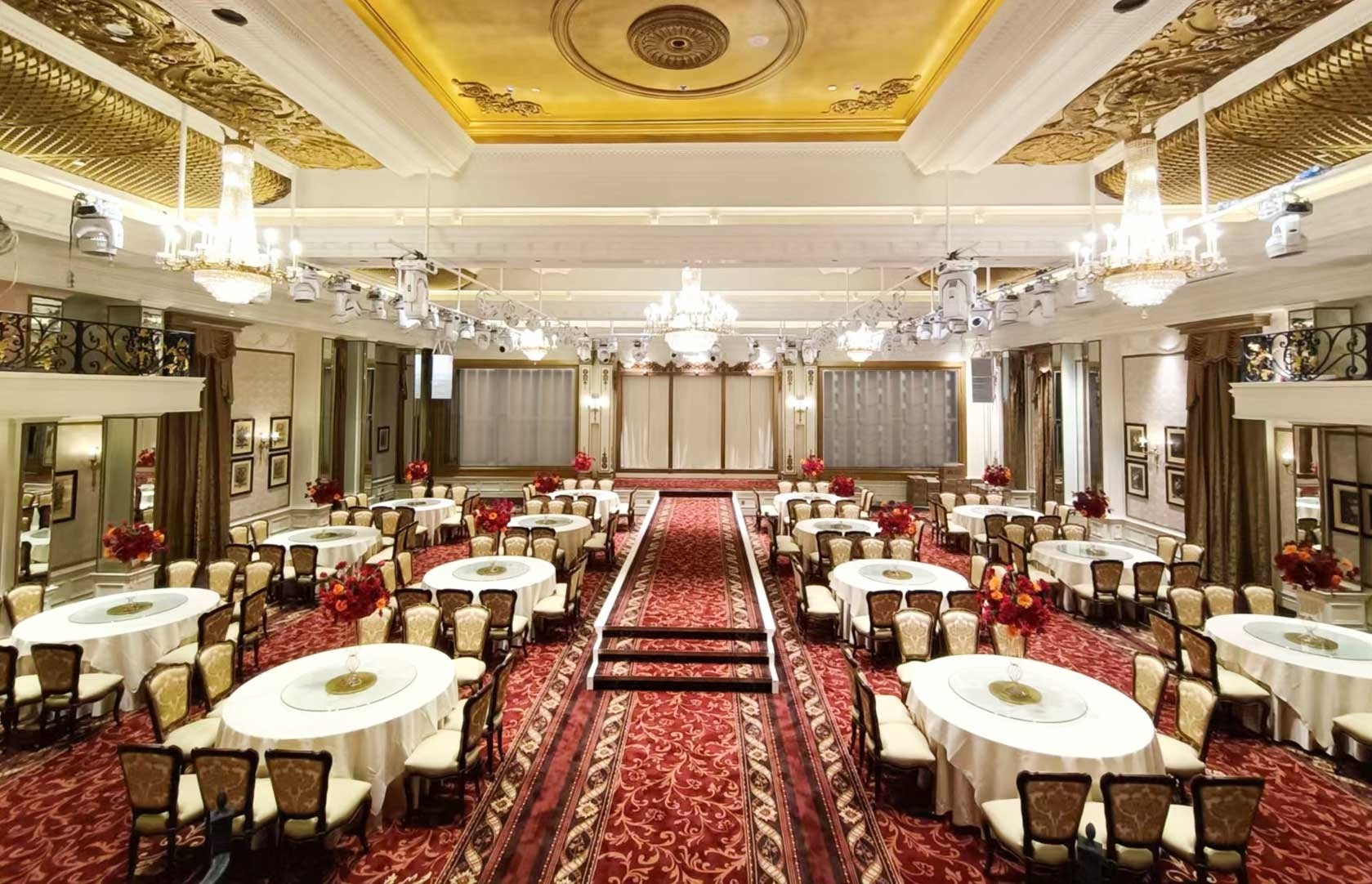少人数から最大240名様まで対応できる2つのバンケットは、金を基調としたラグジュアリーなバンケットと、白を基調としたナチュラルなバンケットで、新郎新婦様からのご要望にお応えします。ゲストからの祝福を浴びながら一歩ずつ下りる大階段、豪華で印象的なシャンデリアは、華やかでドラマティックなパーティー空間を演出いたします。大型LEDスクリーン・映像・音響の設備力と、新郎新婦様同士が鉢合わせをしないよう、プライベート性を高めた設計力も相まって、理想的な一日を鮮やかに彩ります。