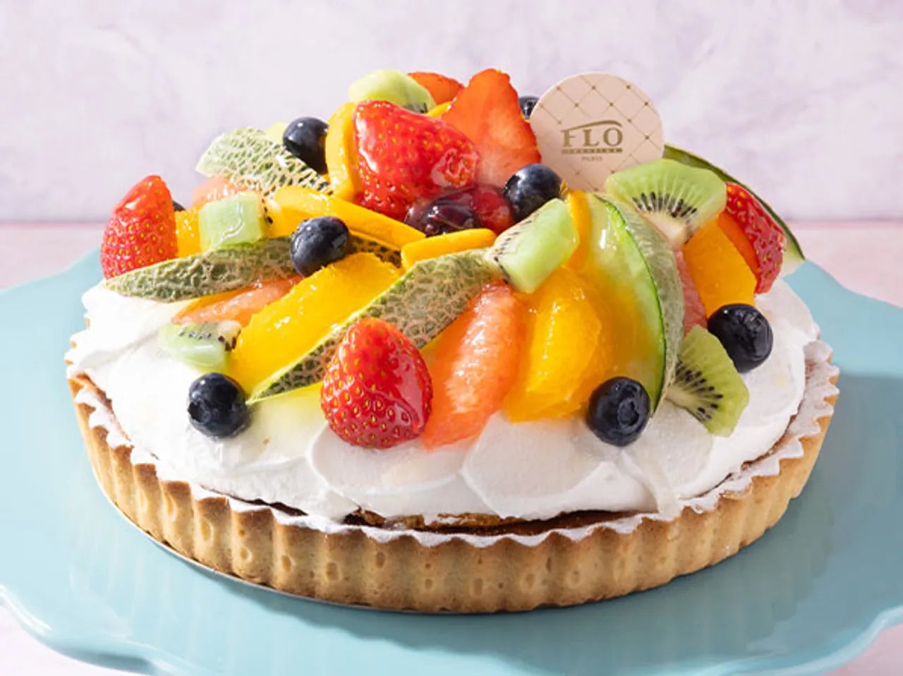 アーモンドクリームのタルト台にカスタードクリームと8種のフルーツを彩りよく飾りました。予約限定の特別なタルトです。