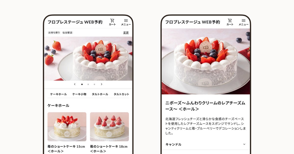 今回、テイクイーツの提供により「フロ プレステージュ」で定番の人気商品や限定商品など、従来のサービスより幅広い商品のWEB予約が可能になりました。
