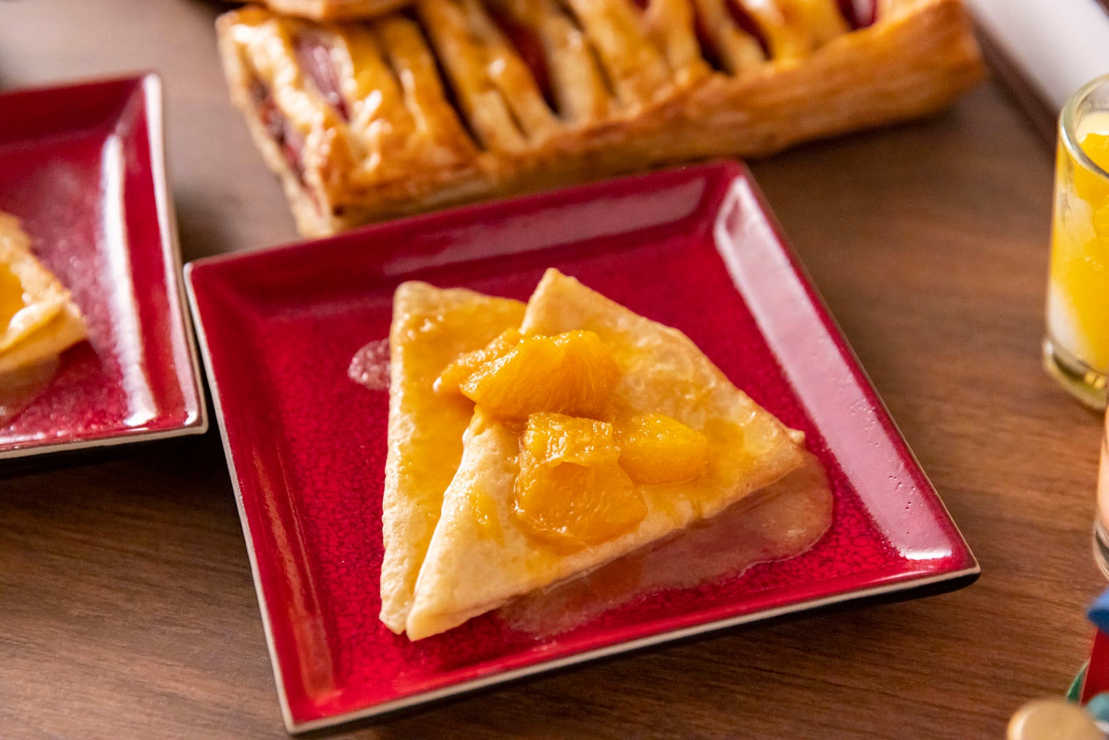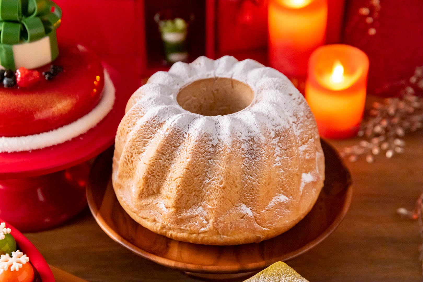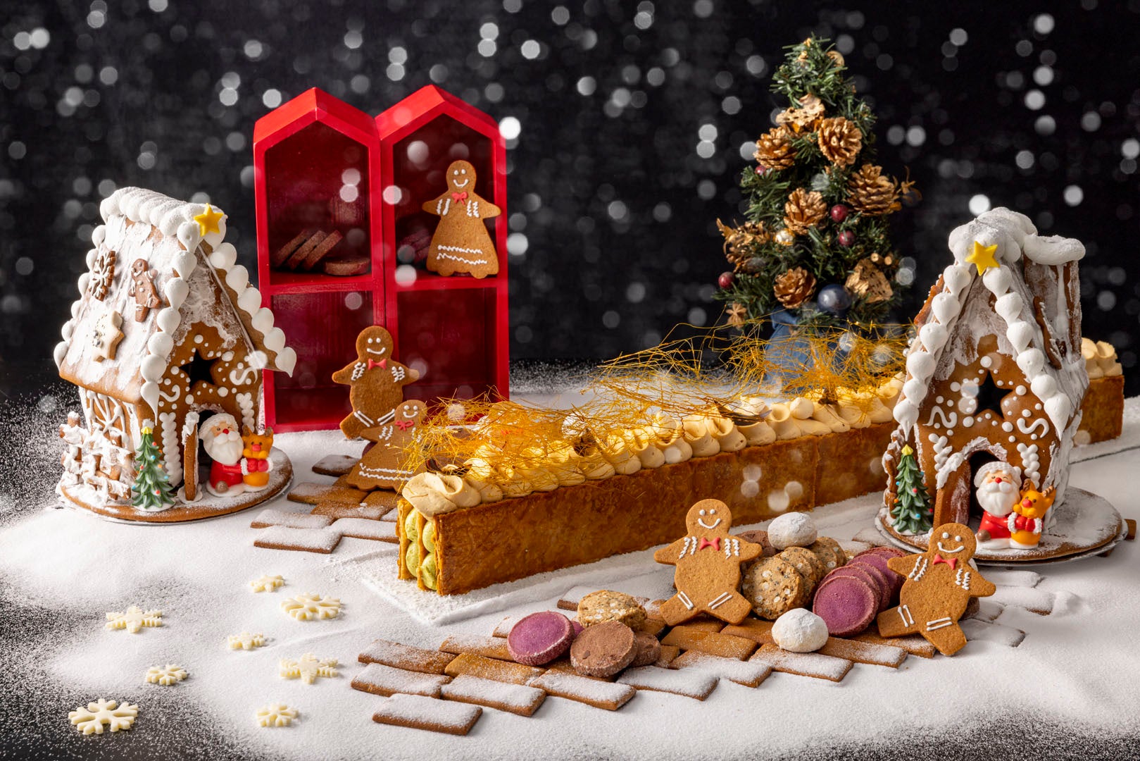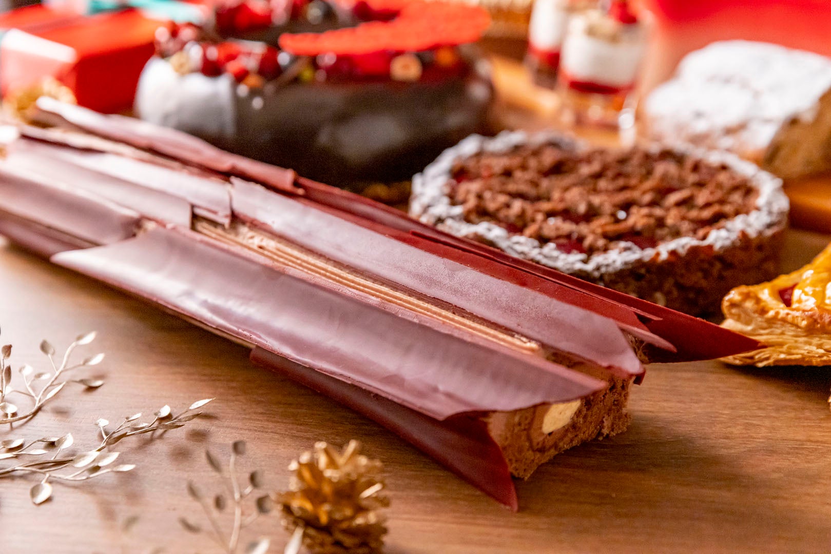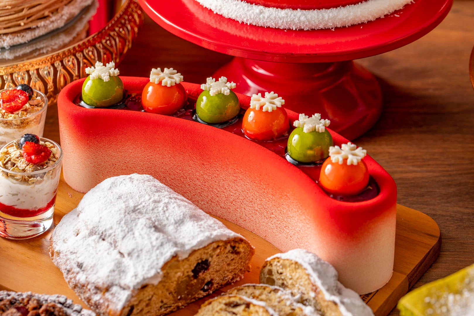 人気のライブステーションは、1メートルほどの長さのサクサクに焼き上げたパイ生地にピスタチオ風味のバタークリームをサンドした「ピスタチオとアマレナチェリーのミルフィーユ」(フランス)をシェフが目の前でカットして取り分けてくれます。サンタクロースのお家を模った「ジンジャーブレッドハウス」(ドイツ)やスペキュロスなどスパイスを使用したアーモンド生地のクッキー「スペキュロスクリスマスクッキー」(ベルギー)が一緒に並び、ヨーロッパの街並みの雰囲気をお楽しみいただけます。さらには、「台湾カステラ(抹茶)」やクリスマスカラーをイメージした「クリスマスカラー団子」といったアジアのスイーツや、アメリカの伝統的な「ミンスミートアップルパイ」など国際色豊かなスイーツ18種類と、とセイボリー7種類をご用意しました。