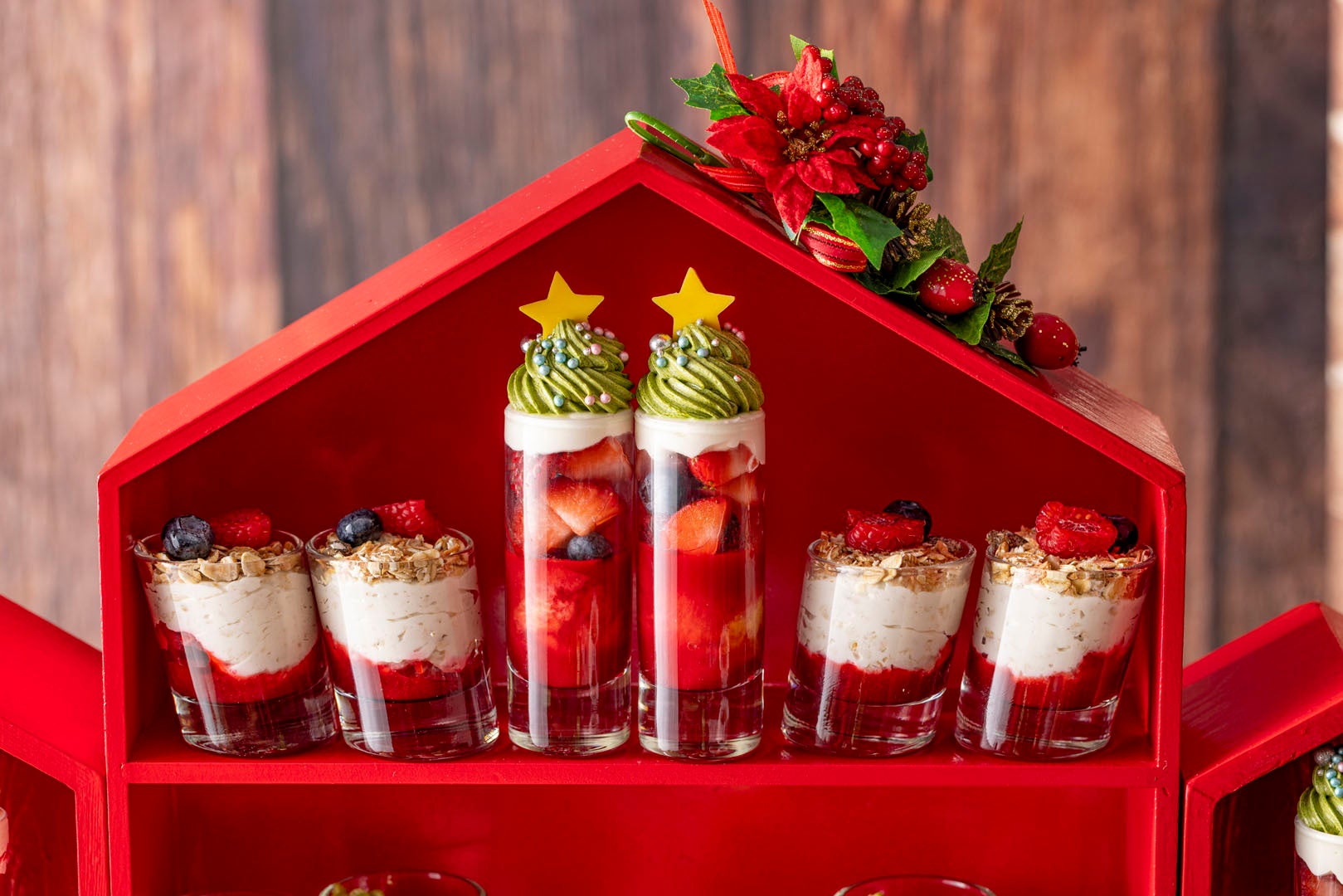 艶やかな深紅のデコレーションがつくる聖なる雰囲気の中で、ご家族や大切な方とクリスマスティーパーティーをお楽しみください。