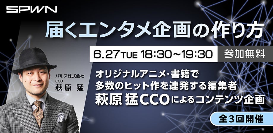 第一回はオリジナルアニメ・書籍で多数のヒット作を連発する編集者、萩原猛CCOによるコンテンツ企画!