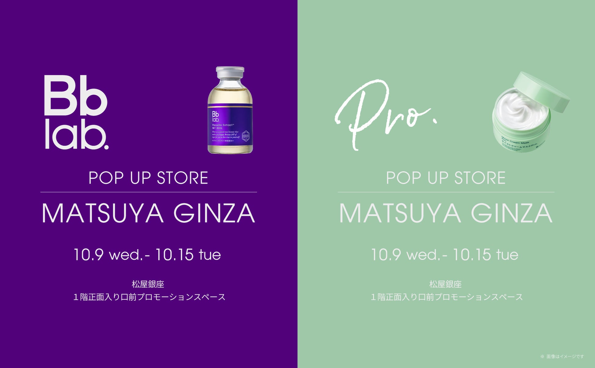 株式会社ビービーラボラトリーズ(本社:東京都渋谷区/代表取締役社長:石神 賢太郎)は、10月9日(水)~10月15日(火)の1週間、東京・松屋銀座にて、「Bb lab.(ビービーラボ)」「Pro.シリーズの<モイストクリームマスクPro.>」2ブランドのPOPUP STOREを出店いたします。