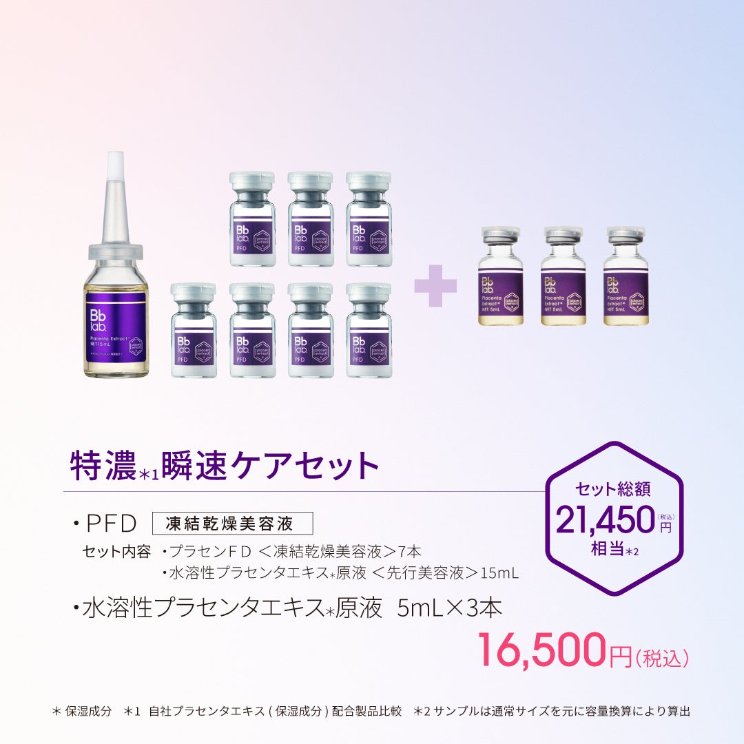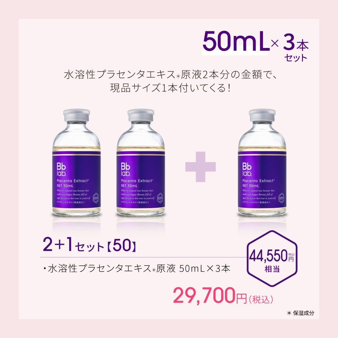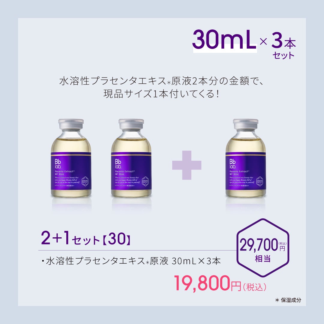 ブランドを象徴する「水溶性プラセンタエキス*原液」が、2本分の金額で、1本付いてくるお得なセットです。