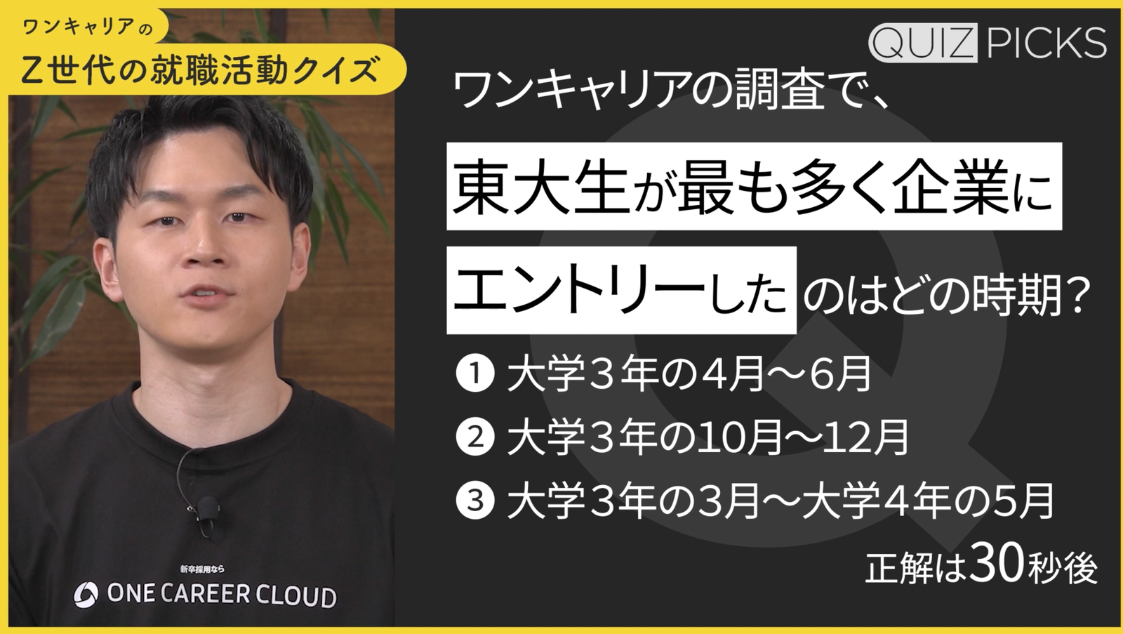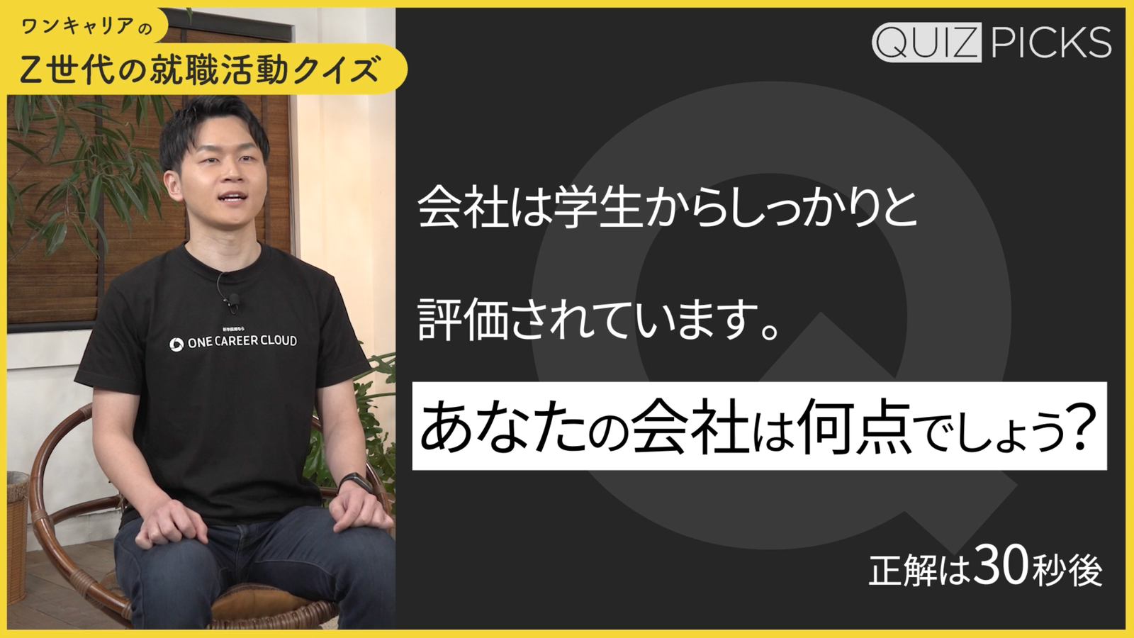 今回放映する番組「QuizPicks(※1)」では、「ONE CAREER」に寄せられた学生からの選考クチコミや、学生向けに実施したアンケート調査の結果を元に、Z世代の就職活動に関する内容をクイズ形式で出題・解説する内容となっております。ぜひご覧いただき、今後の採用活動にお役立てください。