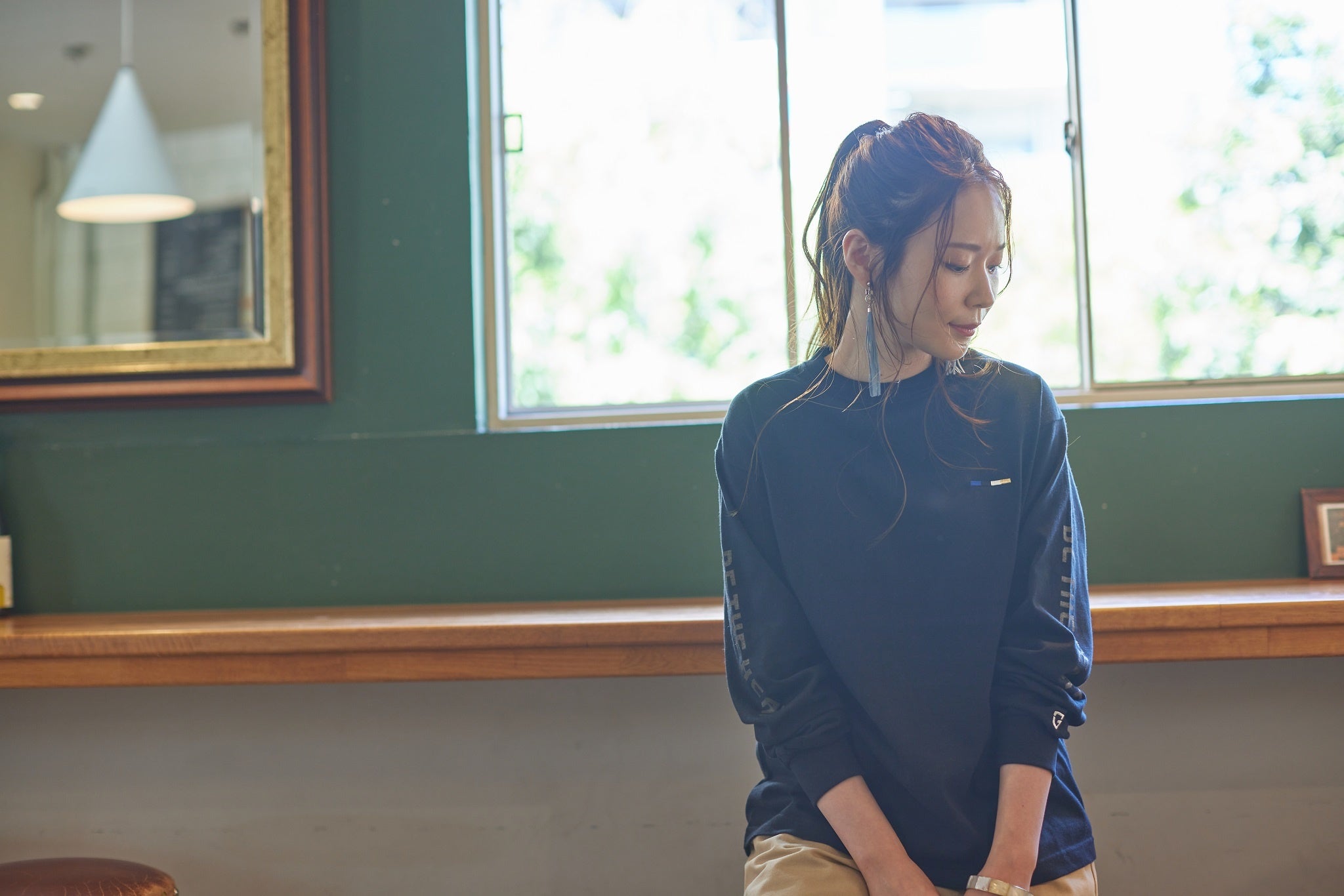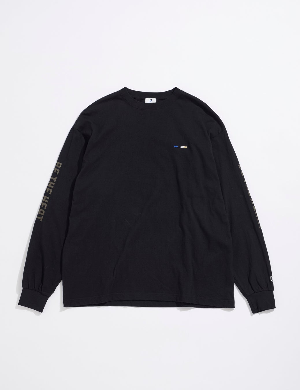 秋冬の長いシーズンに着用できるロングスリーブTシャツ。胸にガンバのクラブカラーをあしらい、袖にクラブコンセプトのテーマ「BE THE HEAT,BE THE HEART」のプリントを入れました。