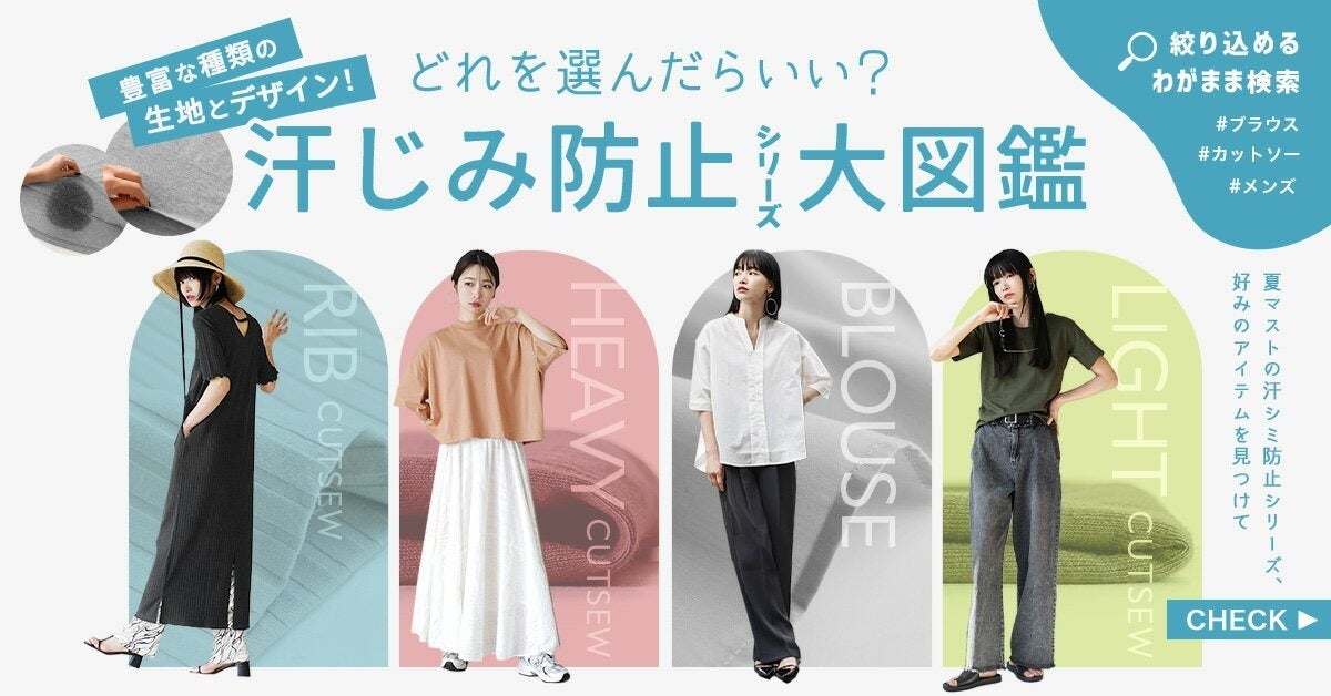 しっかり汗を吸うのに目立たない!猛暑下の汗対策ができるアイテムとしてメディアの注目を集める「汗しみないシリーズ」から自分好みのアイテムがすぐに見つかる大図鑑。コーディネートの参考にも!