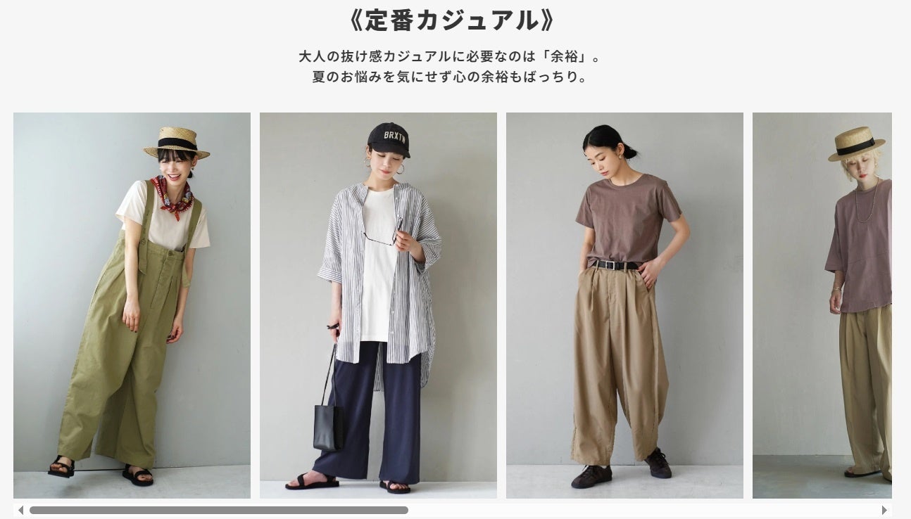 そんなときでも【簡単コーデ】でお好みのスタイリングを楽しんでもらいたいから、テイスト別に楽しめるおすすめコーディネートのコーナーも。