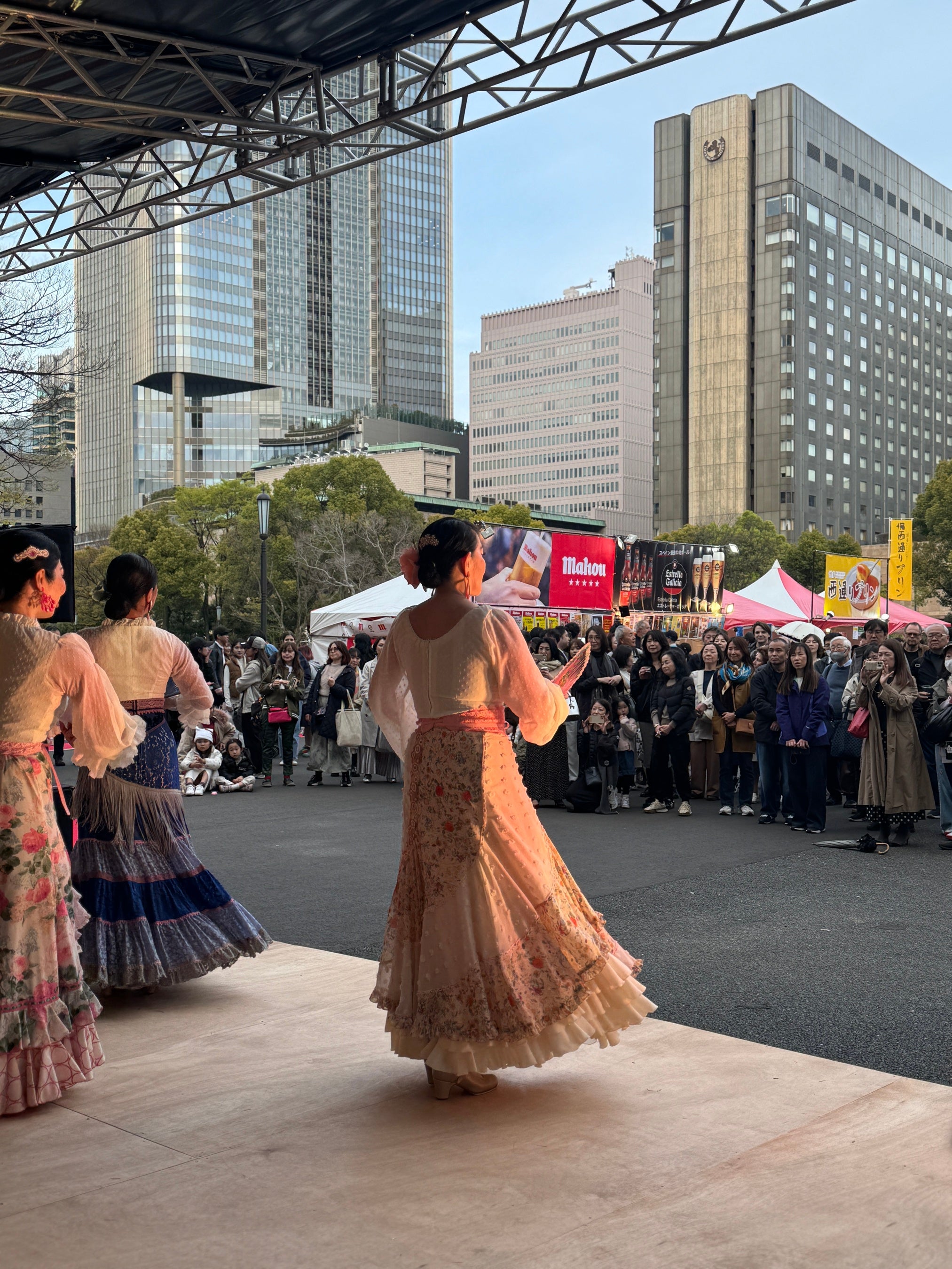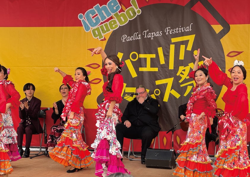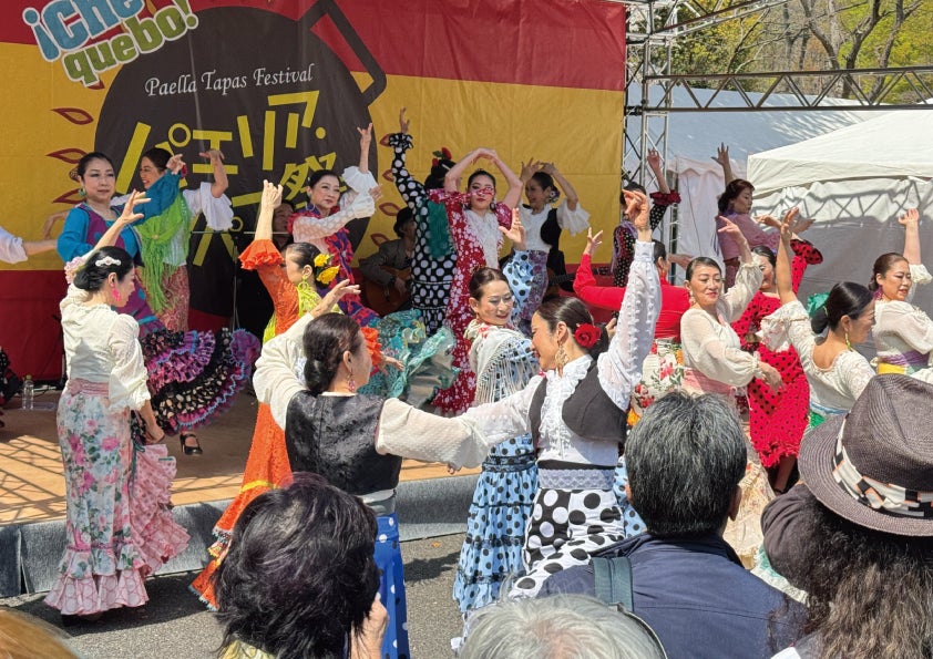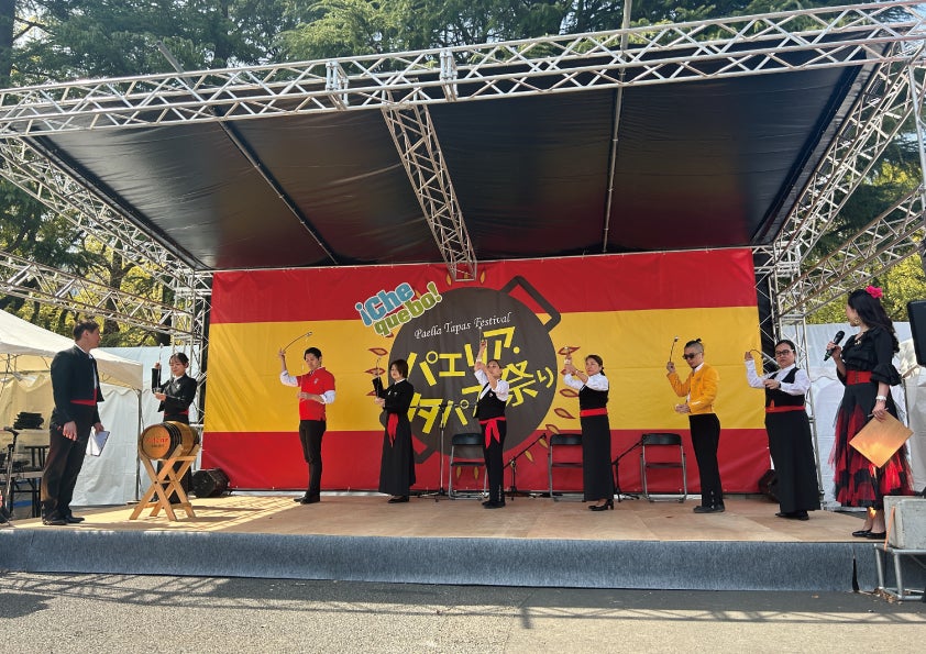 スペインで生まれた伝統的な音楽や舞踊の「フラメンコ」や伝統民族木管楽器「ドルサイナ」、シェリー酒を注ぐ「ベネンシアドール」など多彩。日比谷公園をスペインの世界に!