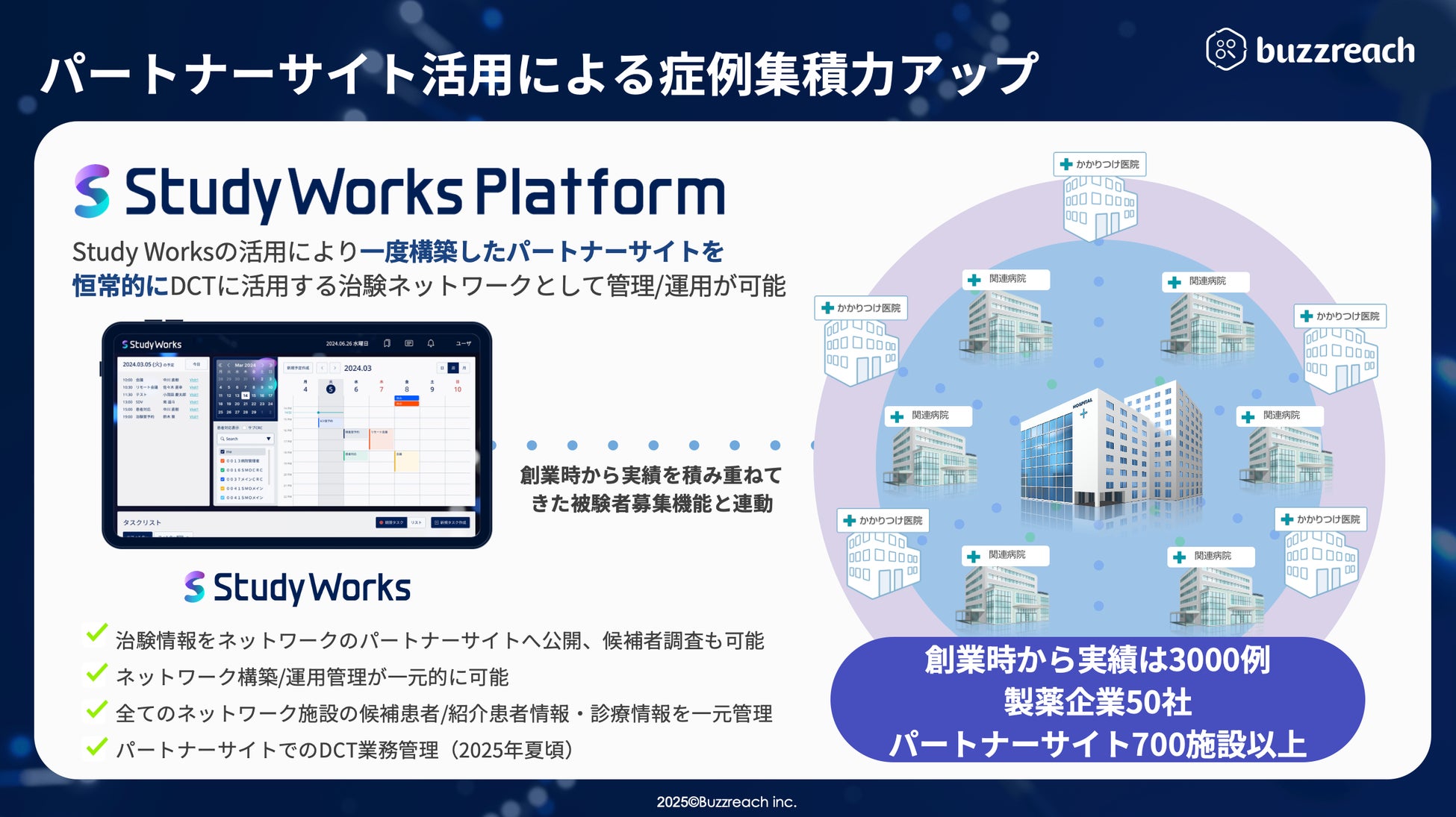Buzzreachは、今後も「StudyWorks」およびパートナーサイト連携モデルを通じて、治験の迅速化と業務の最適化を支援してまいります。