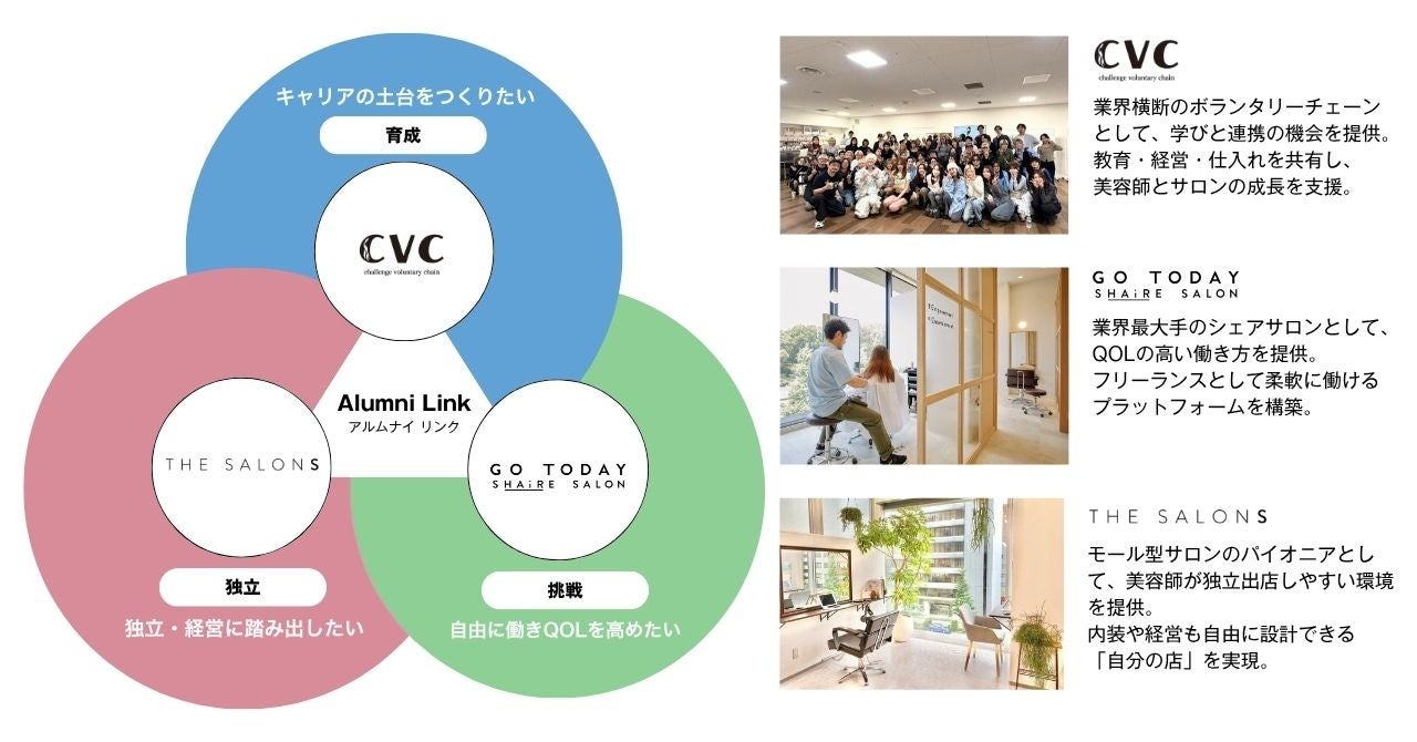 辞めてもつながる、新しい美容師ネットワーク「Alumni Link」が誕生。業界大手3社が連携し、GO TODAY × SALONS 複合型サロンを CVCが活用し美容師主体のキャリア支援を実現。