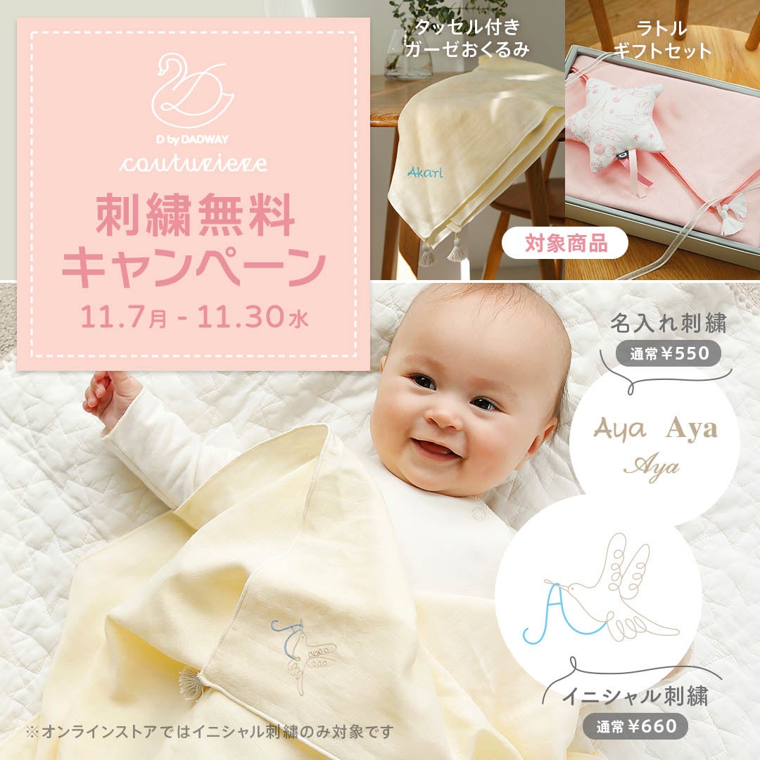 11月30日まで「D by DADWAY」の対象商品をご購入すると刺繍代が無料になるキャンペーンを実施しています。