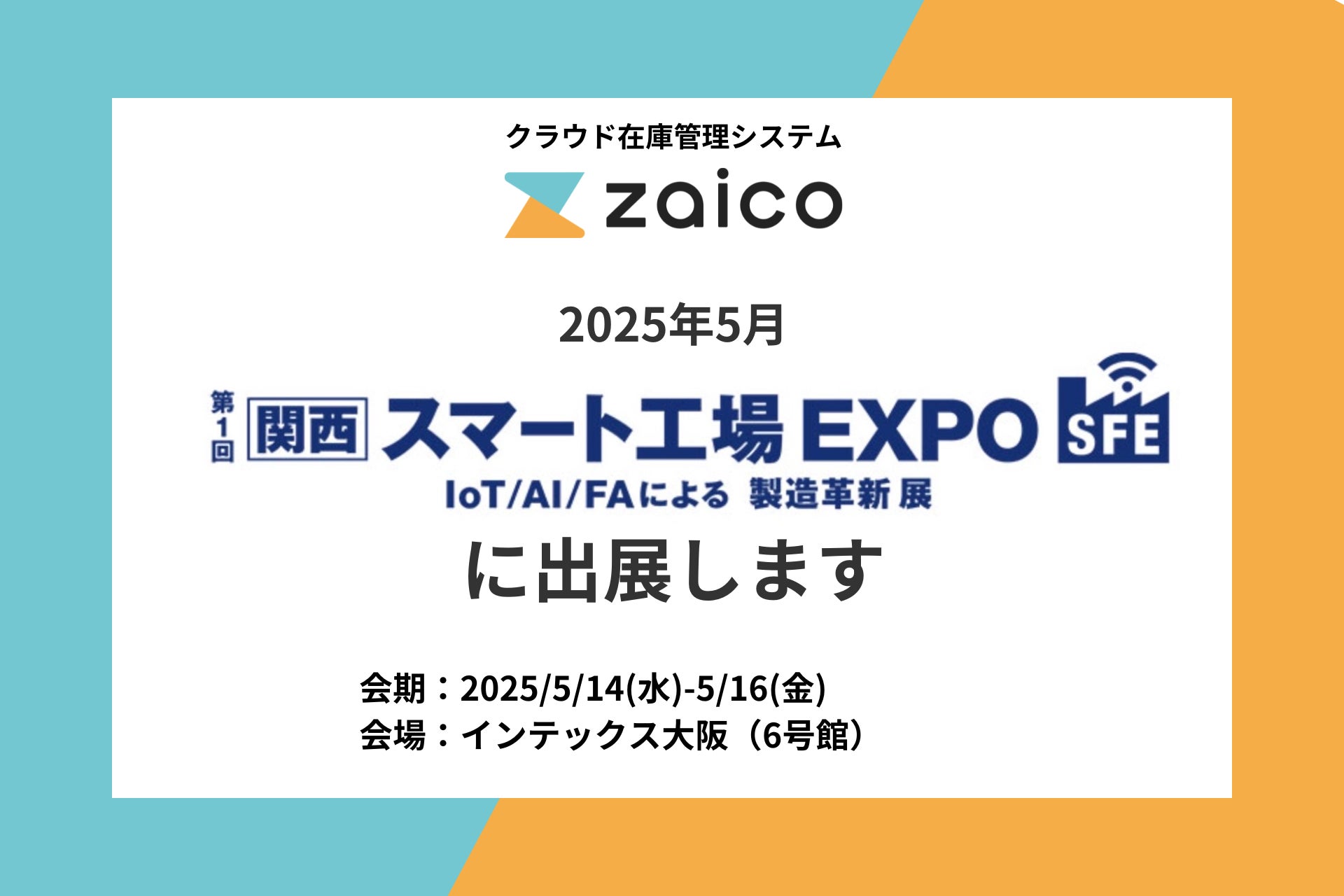 株式会社ZAICO(本社:山形県米沢市大字花沢331番地、代表:田村壽英)が提供するクラウド在庫管理システム「zaico」は、2025年5月にインテックス大阪で開催される大型展示会Factory Innovation Weekの「第1回[関西]スマート工場EXPO」に2025年5月14日(水)~5月16日(金)の期間、出展いたします。