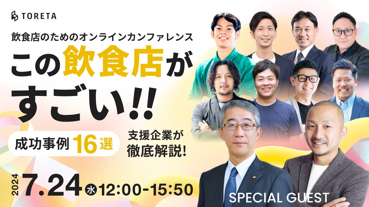 成功事例16選!支援企業が徹底解説飲食店のためのオンラインカンファレンス 「この飲食店がすごい!!成功事例16選 支援企業が徹底解説」7/24(水)オンライン開催!