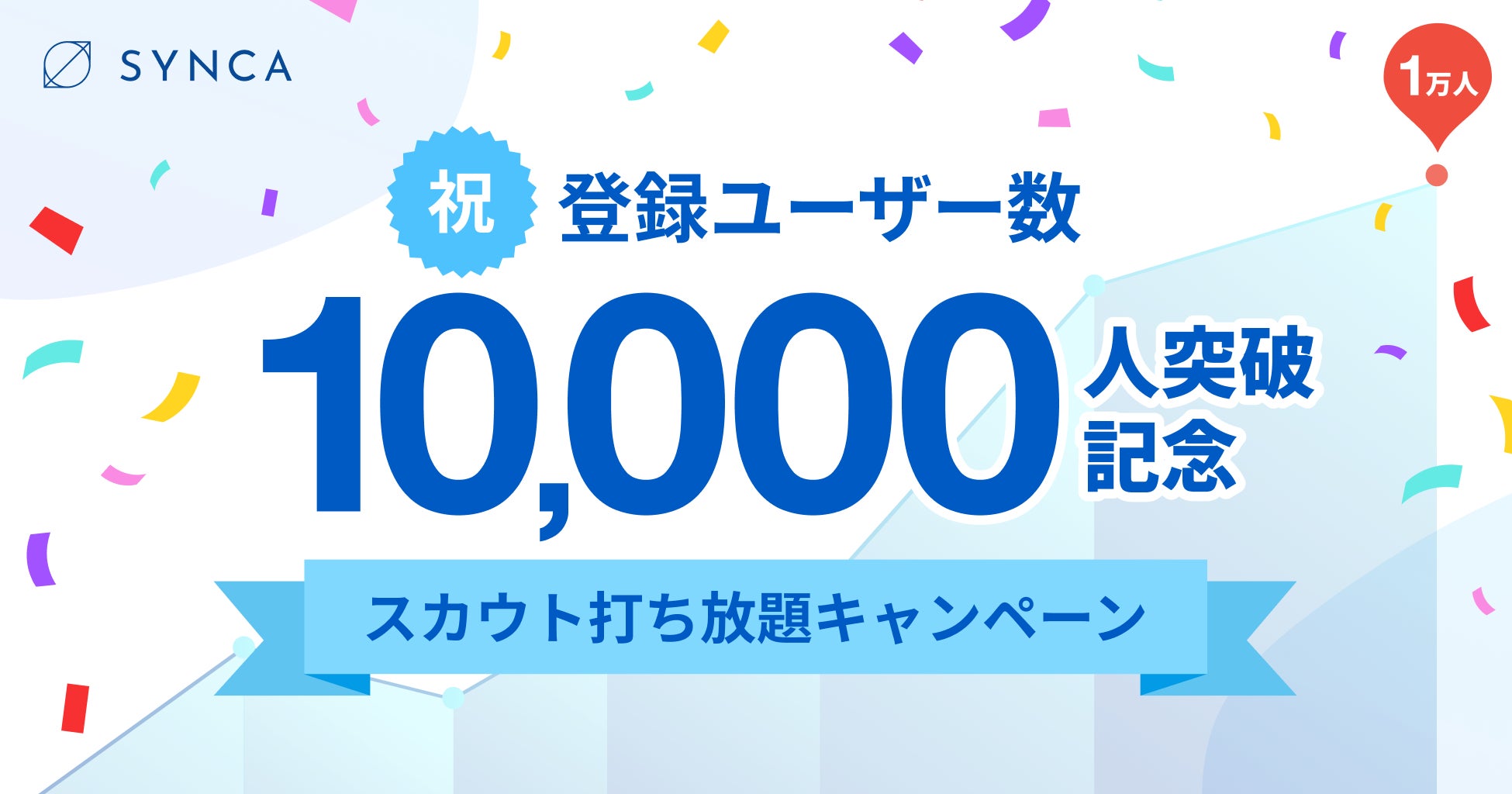SYNCAの登録ユーザー数10,000人突破を記念し、新規導入企業に対してスカウト打ち放題キャンペーンを開始