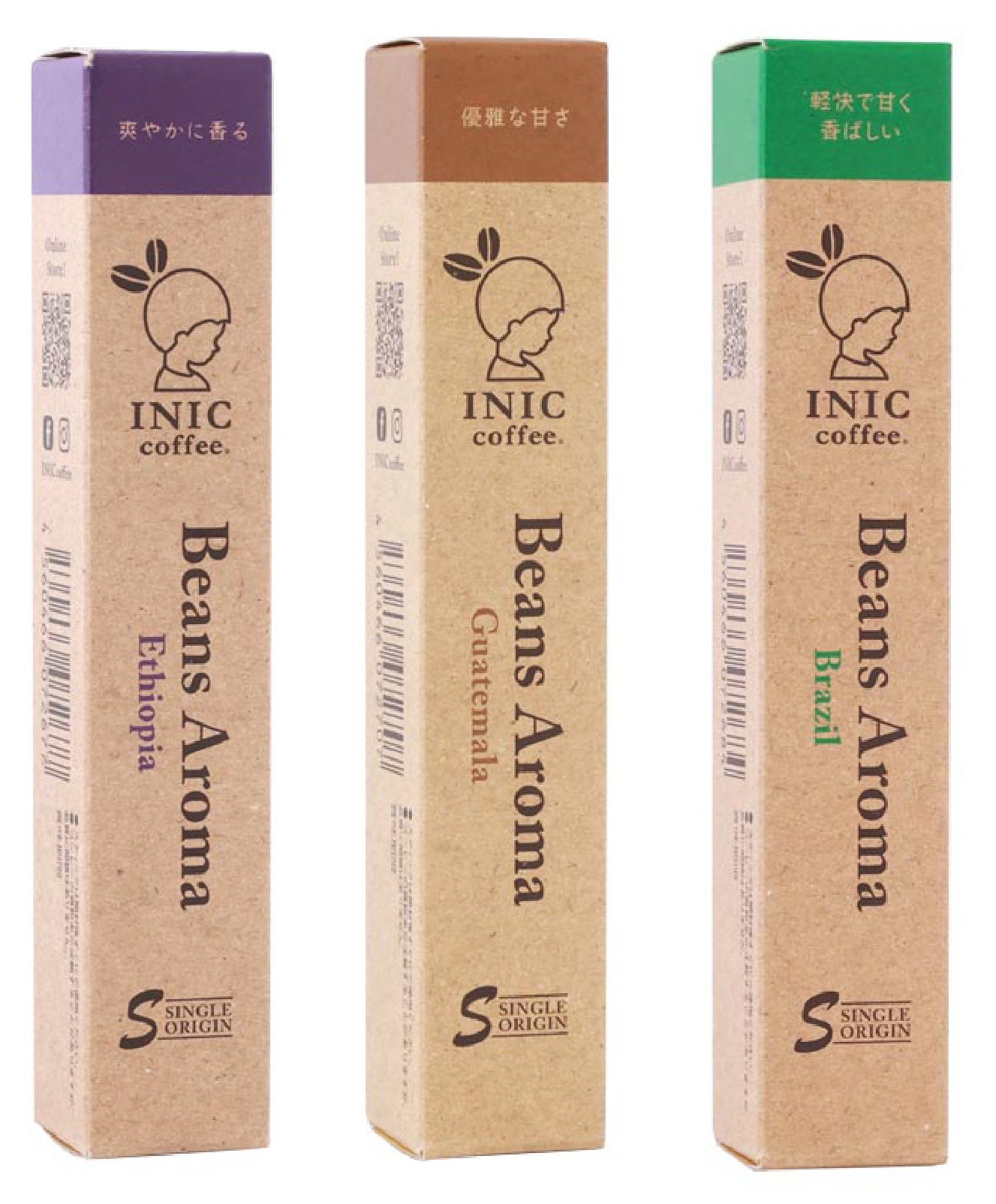 - シングルオリジンコーヒー「Beans Aroma」の単品3本入りが スタイリッシュなパッケージで新発売。